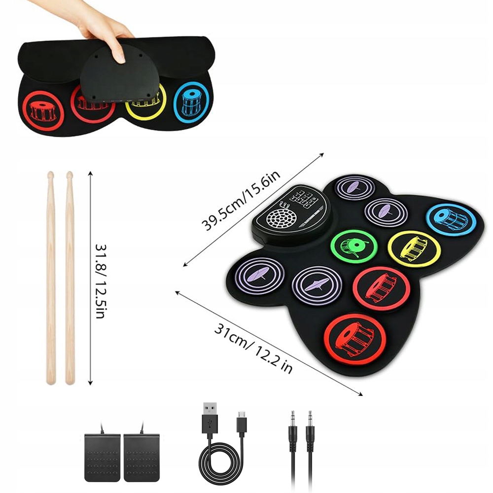 🎵Портативность:Встроенная перезаряжаемая батарея обеспечивает до десяти часов воспроизведения. на одном заряде. Изготовленная из прочного силикона, барабанная установка легко сворачивается и удобно переносится куда угодно.