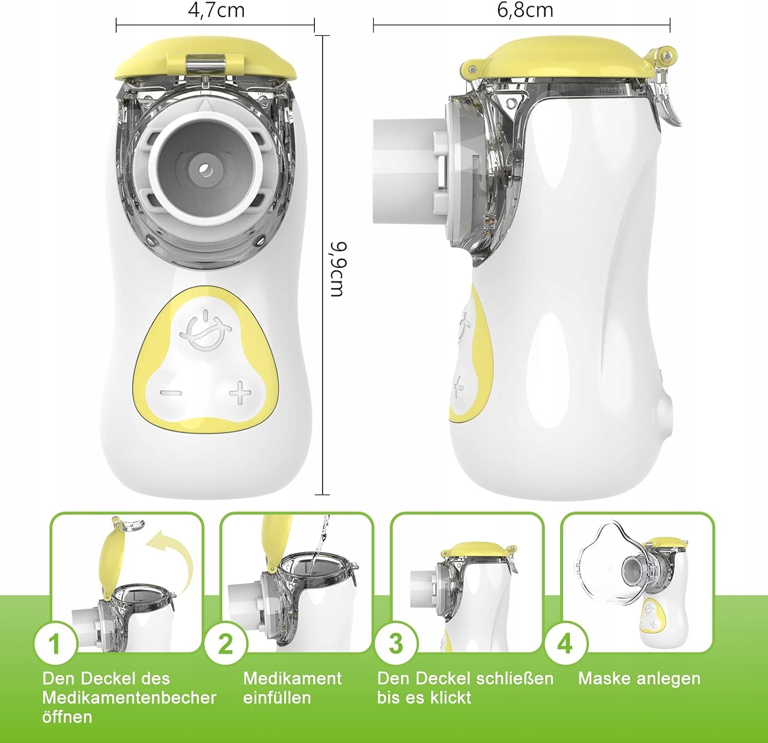 <ул>Бесшумная работа и эргономичный дизайн: автоматическое отключение через 10 минут. Оснащен двумя масками и одним мундштуком, подходит для взрослых и детей. Благодаря небольшому размеру он поместится в любом кармане куртки, а встроенный аккумулятор делает его идеальным для путешествий.
