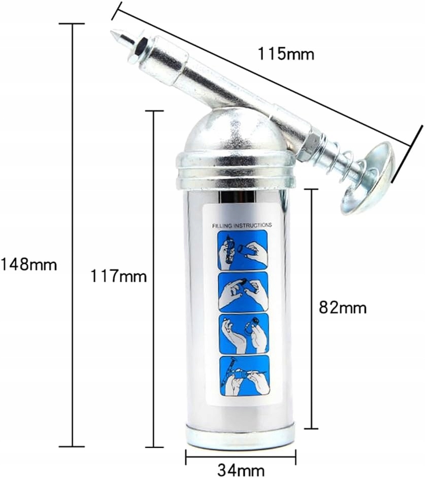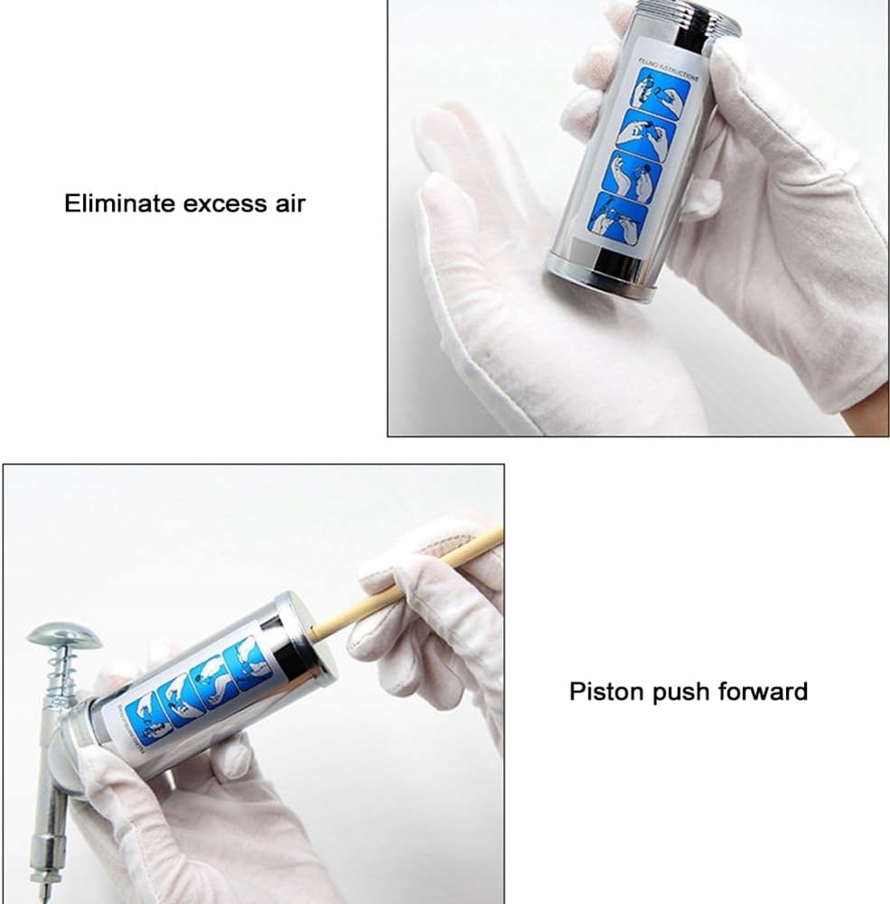 Особенности: машина из цинкового сплава с длительным сроком службы, нет необходимости часто заменять ее. Благодаря пружине из нержавеющей стали она обладает тонкой эластичностью, что позволяет вам чувствовать себя комфортно даже после длительного использования. Простота в использовании: просто открутите крышку и убедитесь, что внутренняя пластина прижата к нижней части цилиндра, отделите головку машины от цилиндра, заполните машину, затем удалите лишний воздух и, наконец, нажмите на поршень. Небольшой размер и легко носить с собой, вы можете взять его куда угодно. Он присутствует и не протекает во время использования, что обеспечивает удобство использования.
