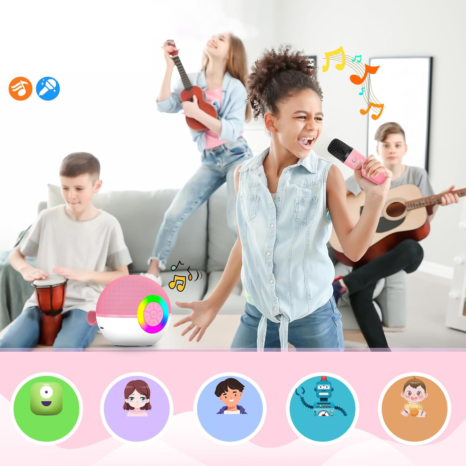 - Этот микрофон для детей меняет ваш голос благодаря 5 удивительным эффектам! Но это также создает танцевальное шоу, которое бьет до ритма. Портативный микрофон для детей был разработан с вдохновением! Отличные игрушки для маленьких девочек В течение многих часов развлечения