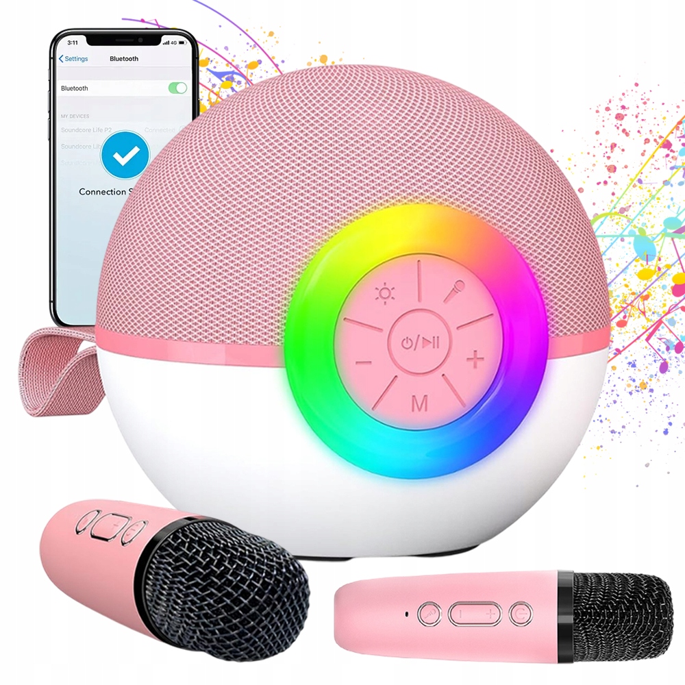 Портативный набор караоке Bluetooth -динамик RGB Два USB Mini Jack Microphones
