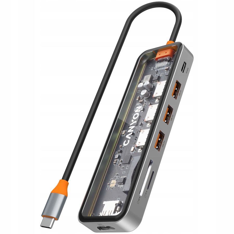 Портативный концентратор USB-C 7-в-1 4K Canyon DS-13, прозрачный