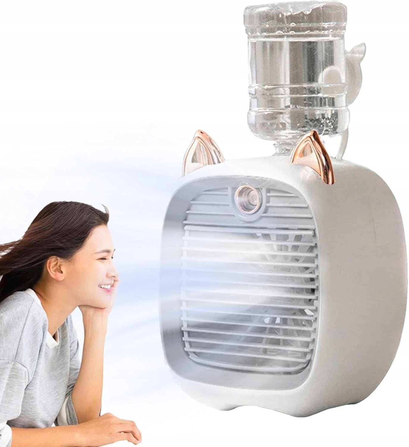 Вентилятор Anti -Spraying: благодаря появлению фонтана и тумана, этот вентилятор кондиционера распыляет воду, чтобы охладить вас. У него также есть USB -кабель для легкой зарядки в любом месте.