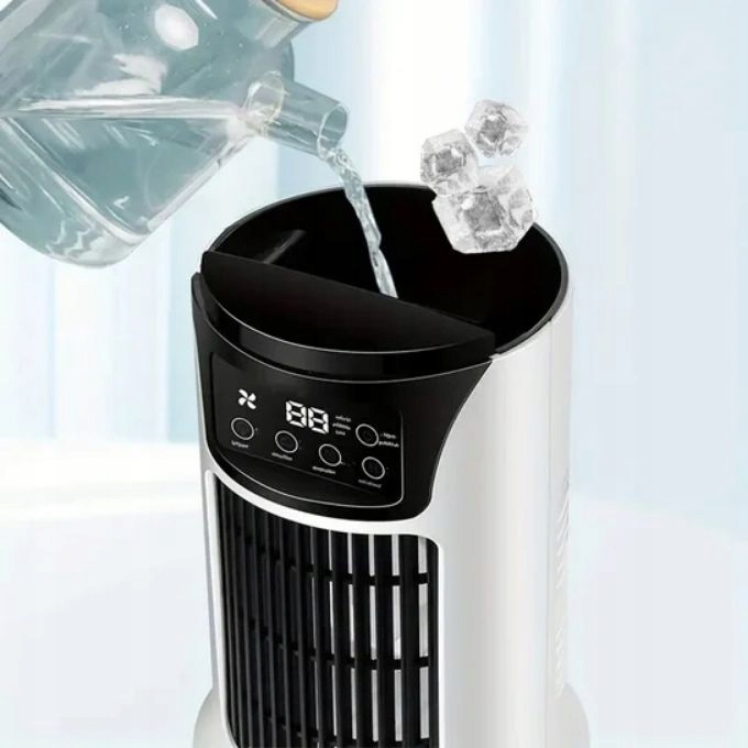 Просто налейте в резервуар воды или бросьте кубики льда. наслаждаться прохладным воздухом