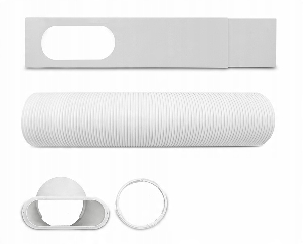- В комплекте: шланг для вытяжки воздуха с адаптерами, оконная раздвижная планка, сливной шланг, пульт дистанционного управления, моющийся пылевой фильтр, отделение для кабеля