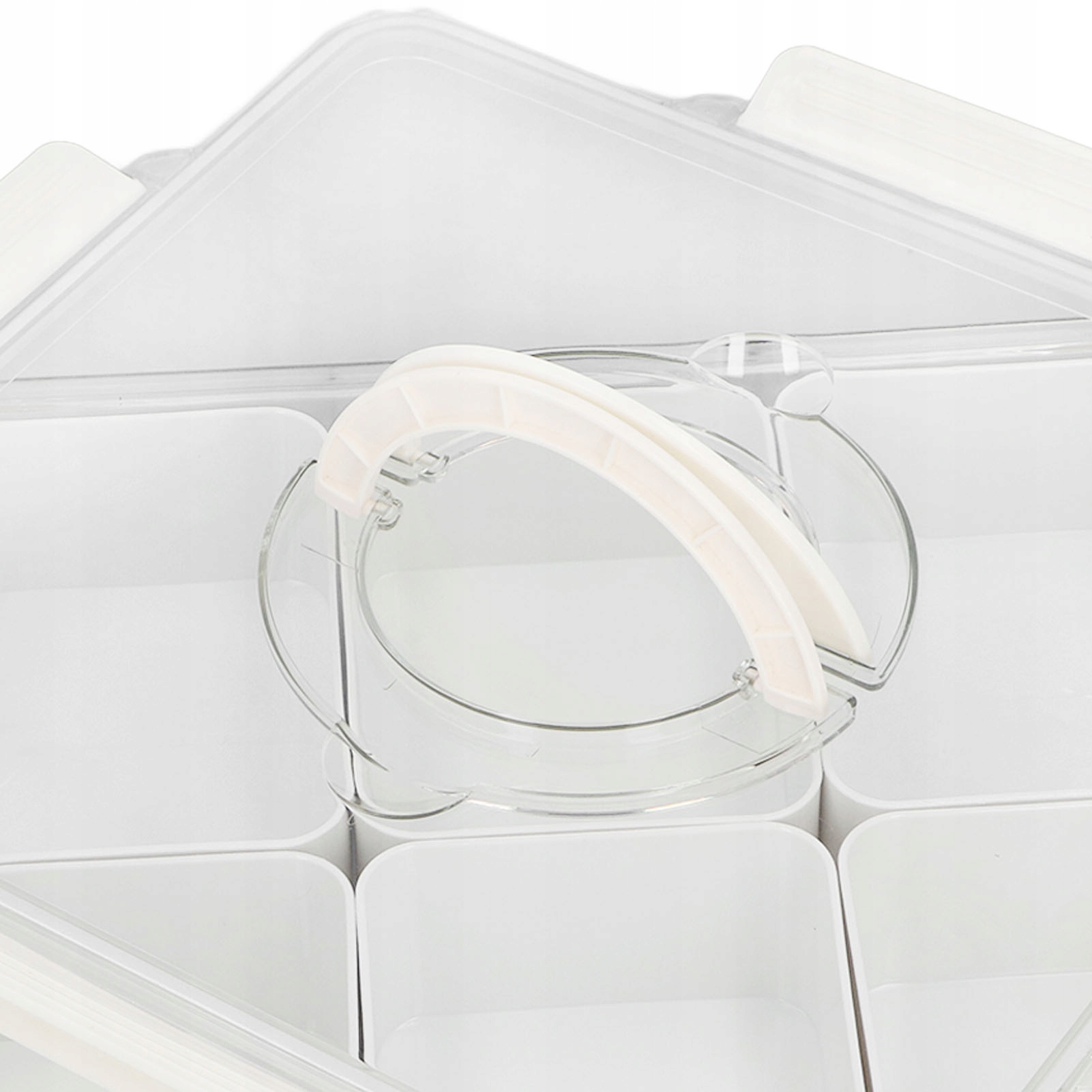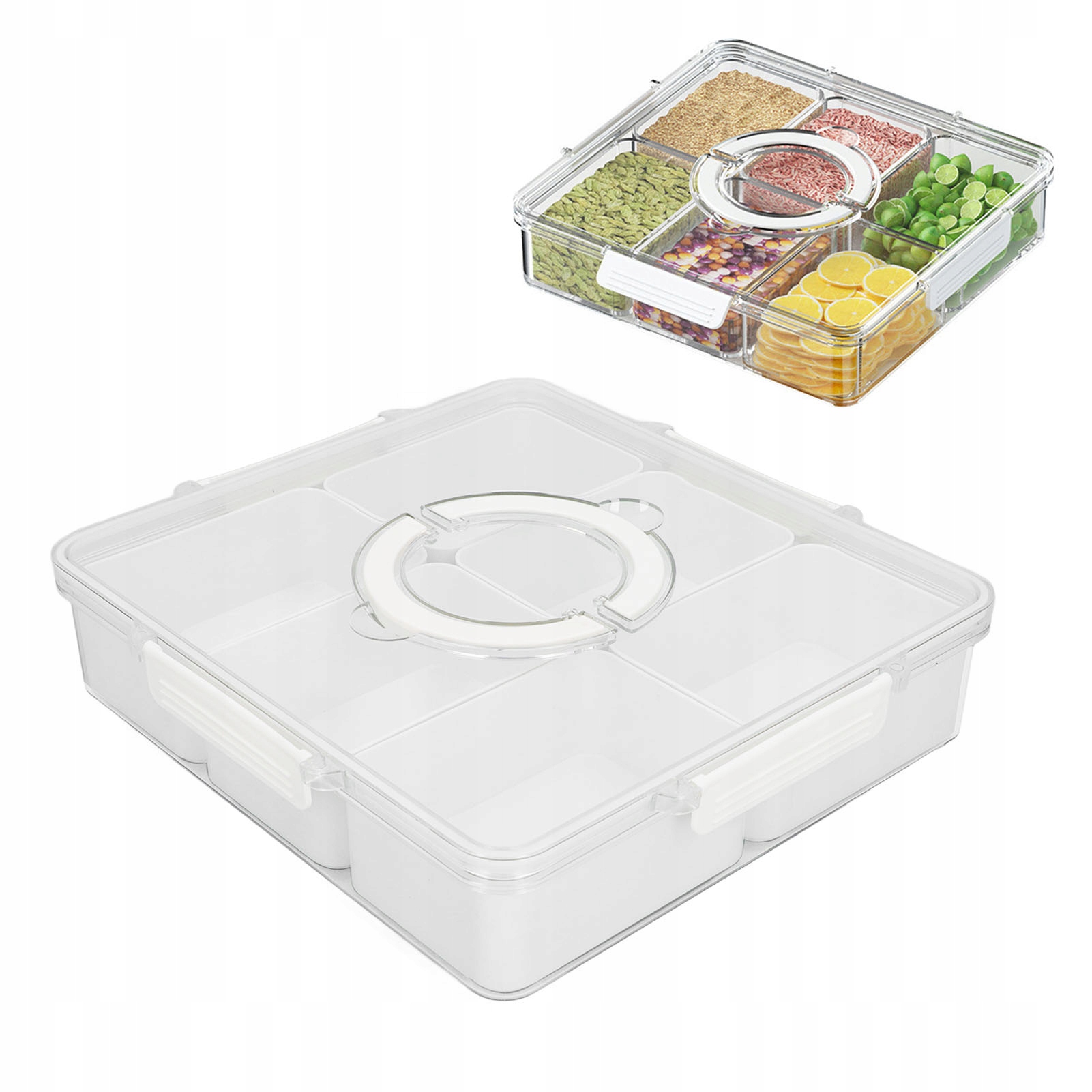 2. 6 Единой разделитель: Организатор закуски разделен на 6 отсеков, удобно для сортировки и хранения, поддержания освежения и сухой пищи. Разделенный проект помогает предотвратить загрязнение.