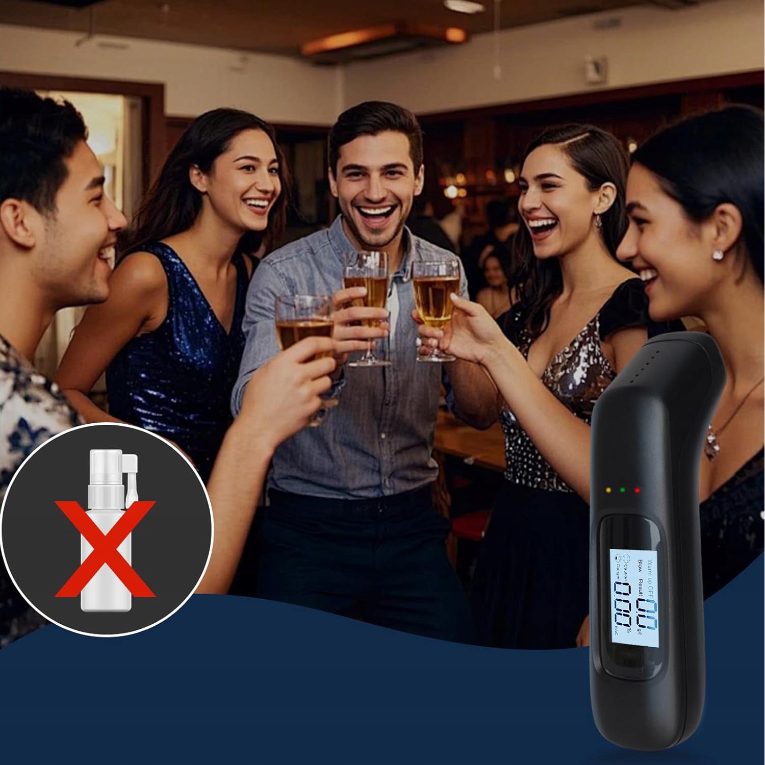 Прибор предупредит вас громким сигналом🔊, когда результат измерения укажет на состояние опьянения. Он заботится о вашей безопасности!