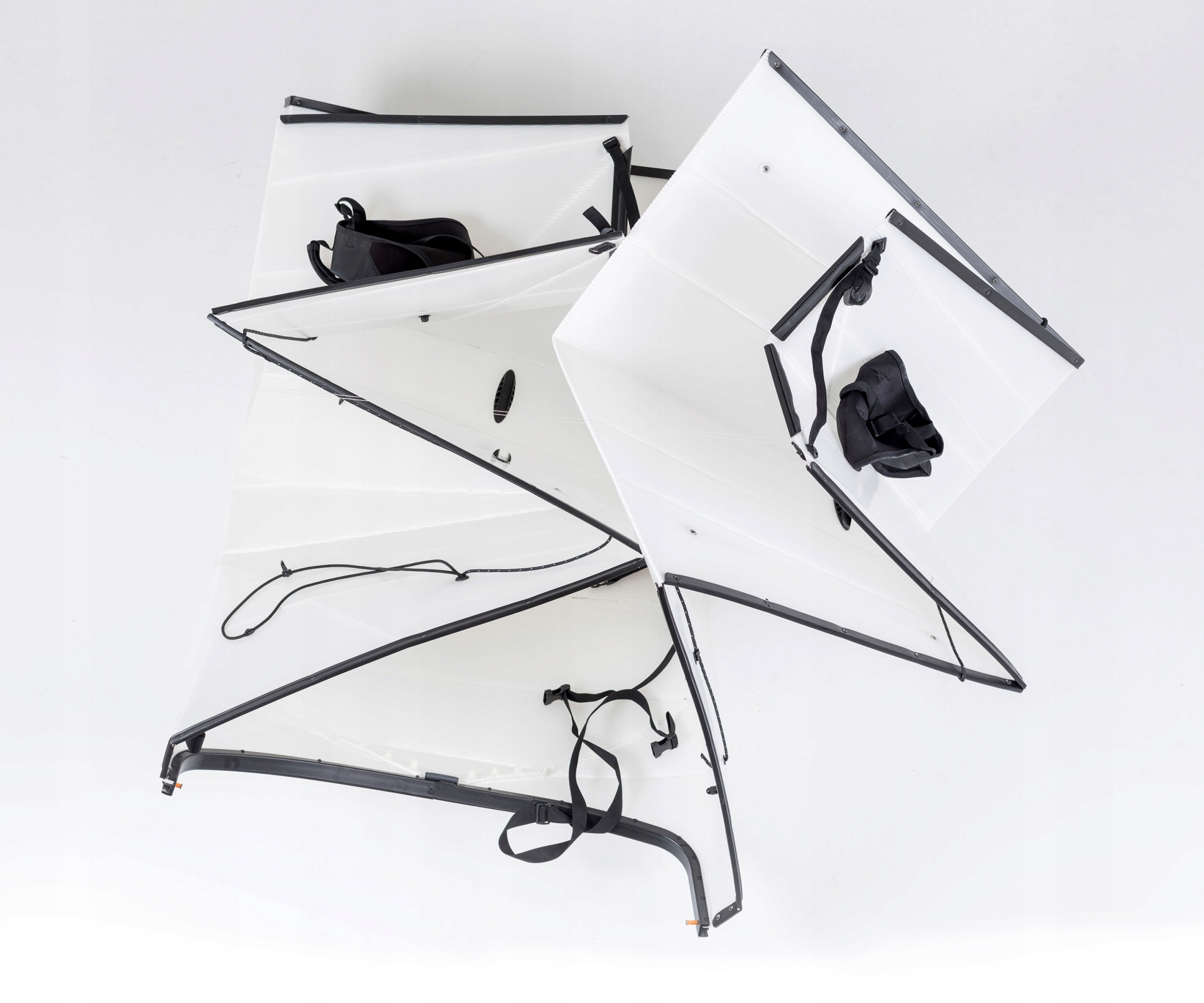 Каяки ORU изготовлены из одного гладкого листа двухслойного полипропилена. Запатентованный рисунок складывания превращает плоский лист в гладкий и прочный каяк. В сложенном виде каяки ORU имеют размер большого чемодана. На воде они быстрые и прочные, с невероятной управляемостью.