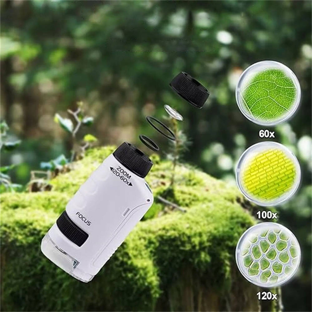 ☑ 【Портативная конструкция】: карманный микроскоп для научных экспериментов для детей невелик, удобно для удержания и подходящего для детей. Портативная конструкция обеспечивает простоту передачи и использования, позволяя детям исследовать в любое время и место.