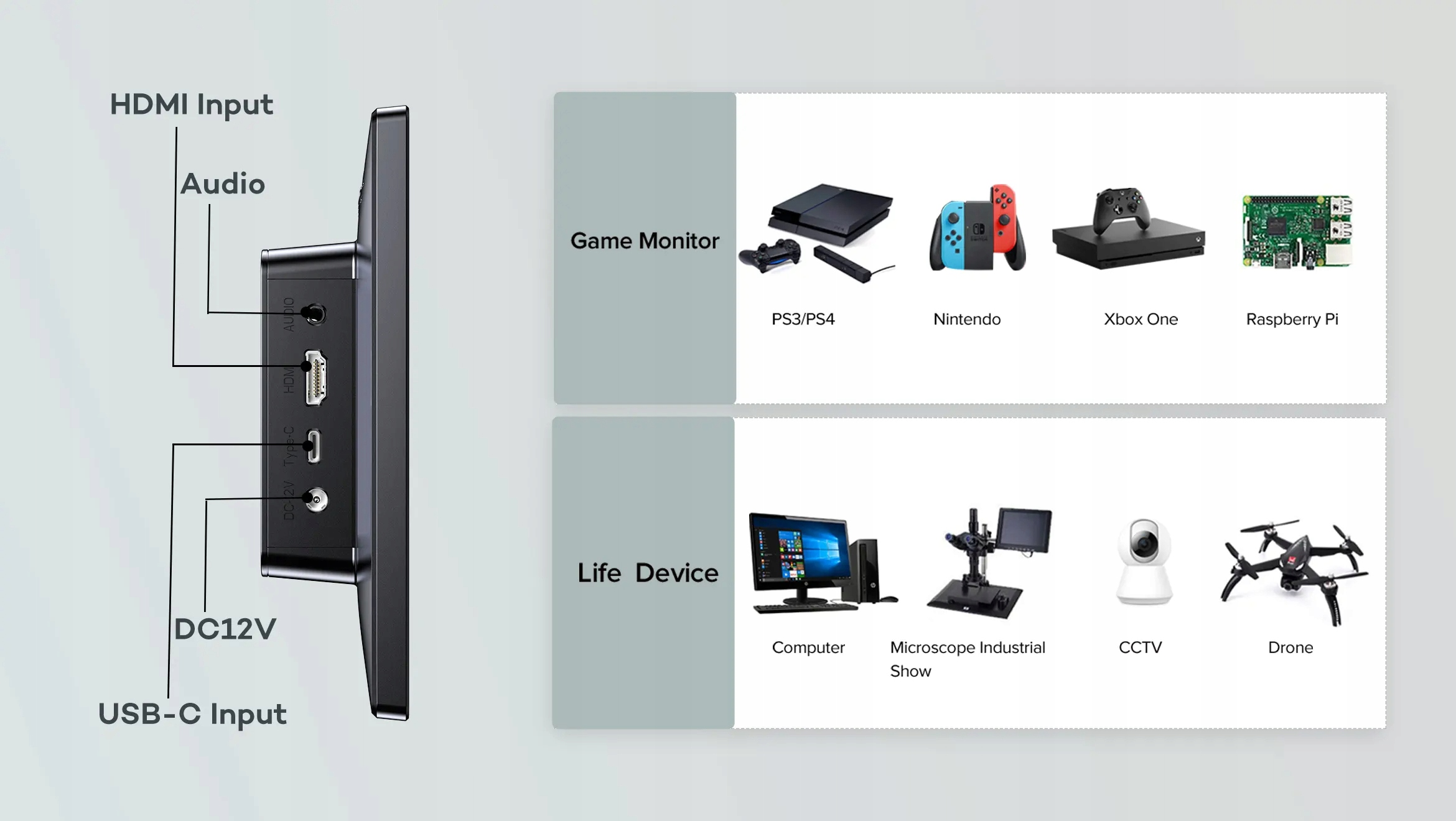 Два порта передачи сигнала HDMI и полнокадровый порт Type-C широко совместимы со всеми устройствами. Многоинтерфейсный дизайн расширяет совместимость этого 10-дюймового сенсорного экрана Raspberry Pi и совместим практически со всеми устройствами повседневного использования, такими как Raspberry Pi 4, компьютеры, ноутбуки и т. д. 10-дюймовый сенсорный экран Raspberry Pi особенно подходит для различных разработки творческих проектов.