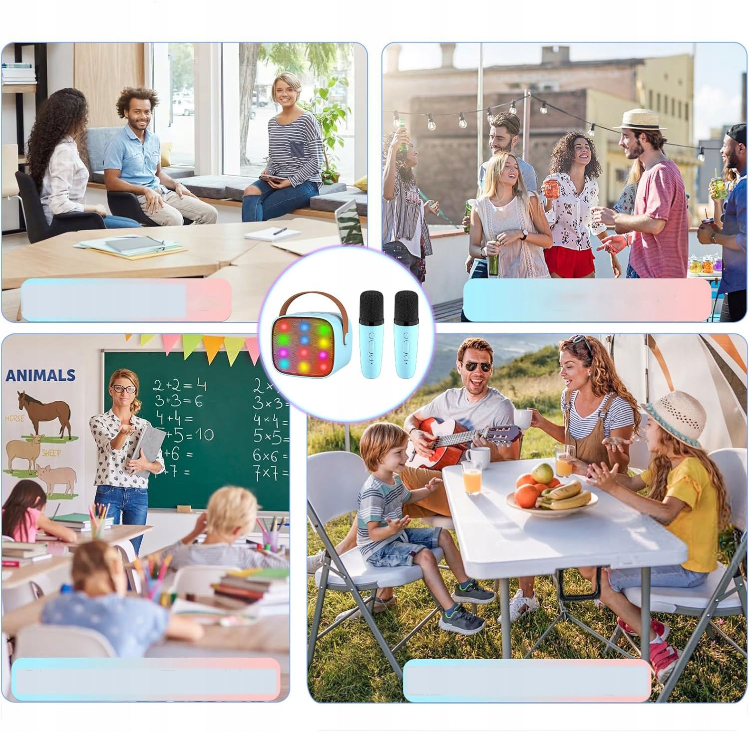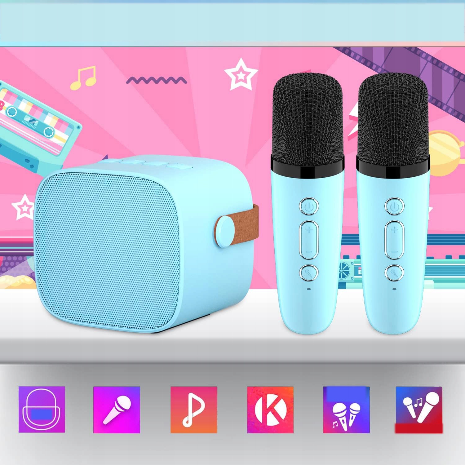 ПОРТАТИВНЫЙ НАБОР ДЛЯ КАРАОКЕ BT + 2 МИКРОФОНА СО СВЕТОДИОДАМИ ABS 90,4*65*75,5ММ СИНИЙ