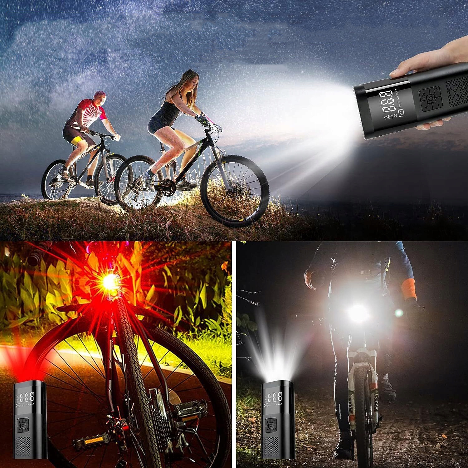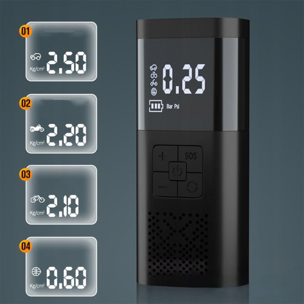 📍📍【 Многофункциональный воздушный насос】: Насос с батареей оснащен четырьмя различными кончиками для накачки и имеет четыре режима, так что вы можете накачать автомобили, мотоциклы, велосипеды и баскетбольные шарики; Велосипедный насос имеет четыре манометра на выбор: PSI Bar, KPA, кг/см². Кроме того, электрический насос может использоваться не только для накачки, но и в качестве портативного источника питания для зарядки электронных устройств.
