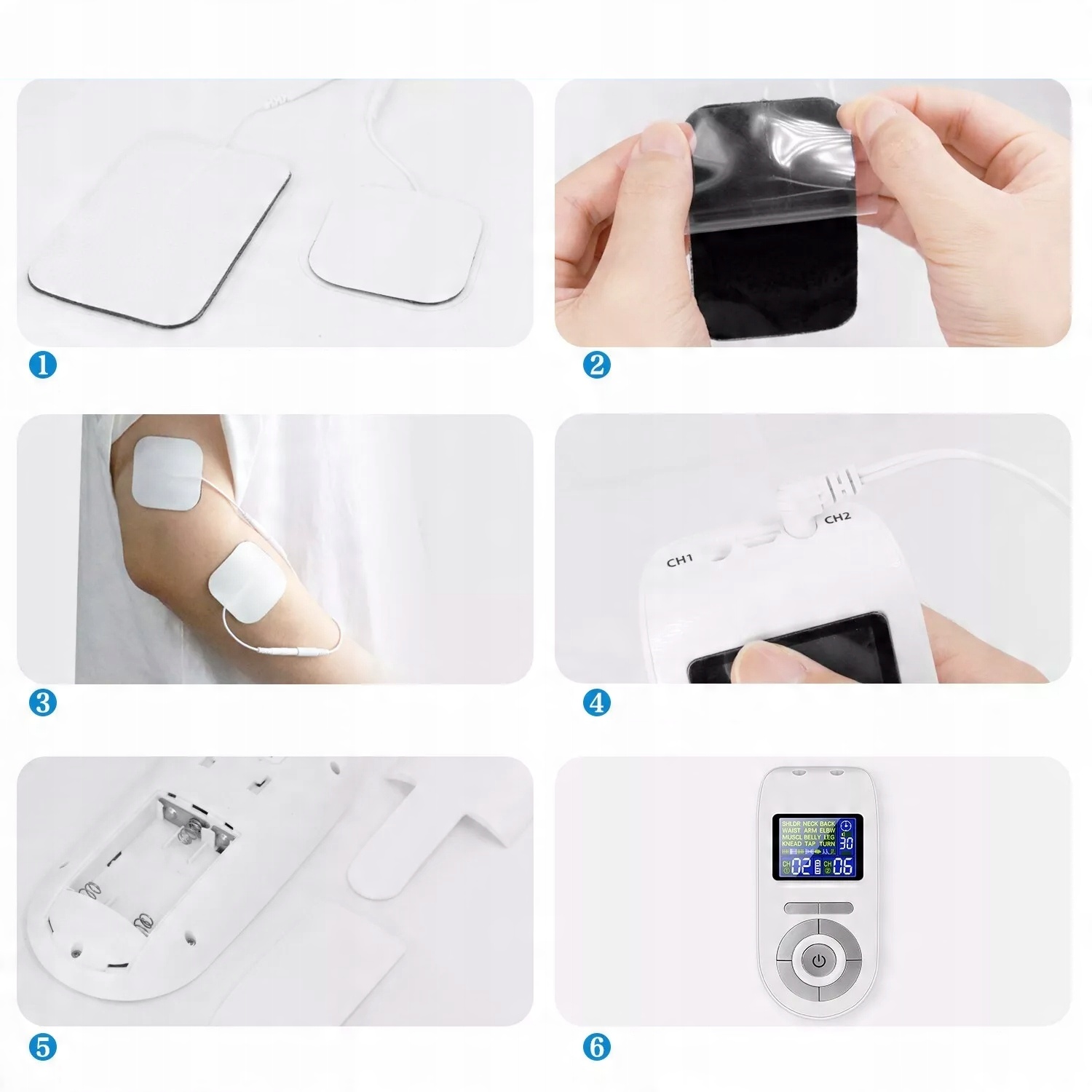 - После включения этого устройства Deens отправляет электричество с проводами на кожные прокладки, чтобы помочь снять боль в теле, таких как боль в спине, руки, колени, ноги, плечи, шея и локти или другие менее распространенные боли, такие как менструальная боль в спортивных болях и травмах; Они облегчают спортивные травмы, артрит и ишиас, стимулируют мышцы, улучшают кровообращение, снимают усталость, укрепляют иммунитет и улучшают качество сна