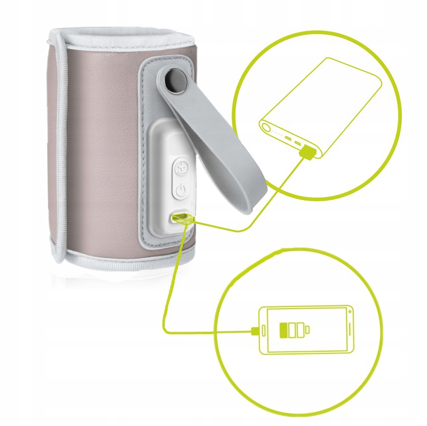 Инновационное решение для активных матерей h1> - Благодаря питания с помощью кабеля USB Thermup Go Полем Обогреватель имеет практическую ручку, которая может быть размещена на раме тележки, кошелька или рюкзака. b> Зарядка через USB -кабель - возможность мощности PowerBank