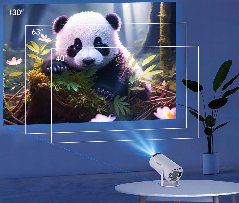 Использование материалов самого высокого качества обеспечит максимально динамичное изображение диагональю от 40 до 130 дюймов, которое всегда будет четким и разборчивым. Высокая контрастность (1500:1) и отличная цветопередача обеспечивают уникальные визуальные впечатления. Проектор изначально имеет высокое разрешение Full HD (720p). Вы можете настроить размер изображения под свои нужды в зависимости от расстояния от стены: