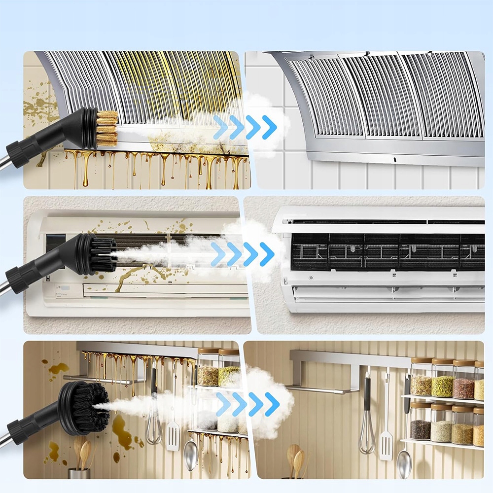 ✨【Многофункциональная пароварка】Универсальную пароварку можно использовать для чистки стен, варочных панелей, вытяжек, микроволновых печей, стиральных машин, холодильников и многого другого. Идеально подходит для кухонь, ванных комнат, мебели, автомобилей и многого другого.