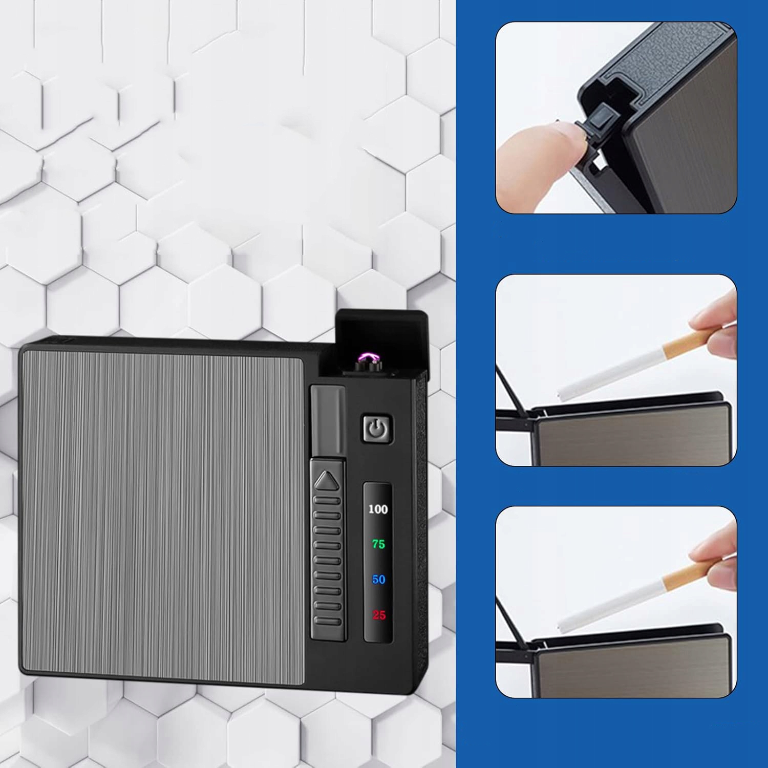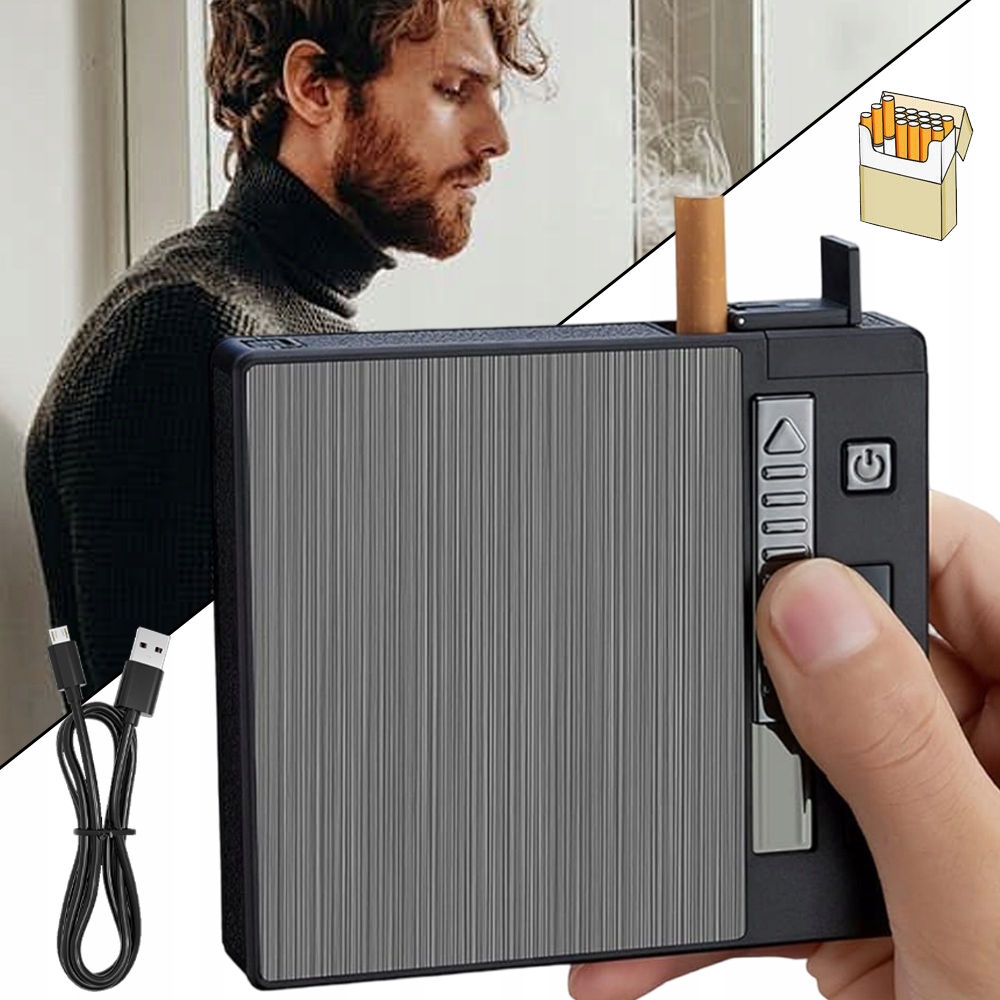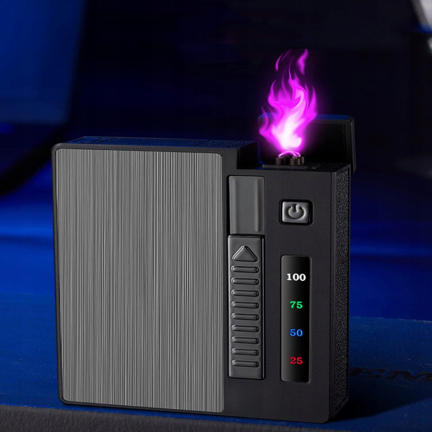 💎💎【Автоматический выброс/зажигание автомобиля】В портсигаре используется двусторонняя защита от скользящий переключатель, нажмите влево, чтобы автоматически извлечь сигареты, нажмите непосредственно на автоматическое зажигание, очень практично и круто использования.