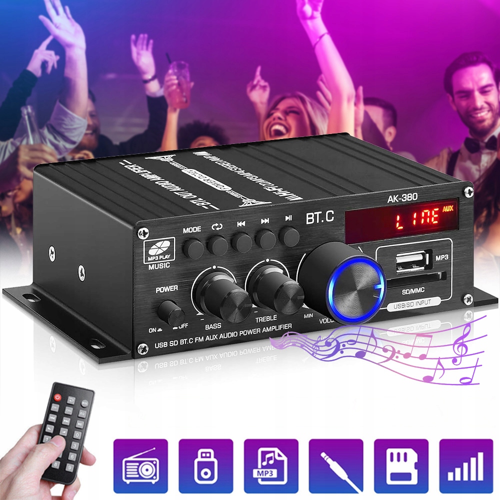 Портативный усилитель 12 В 40 Вт - BT/RCA/AUX, для автомобиля и дома + пульт дистанционного управления