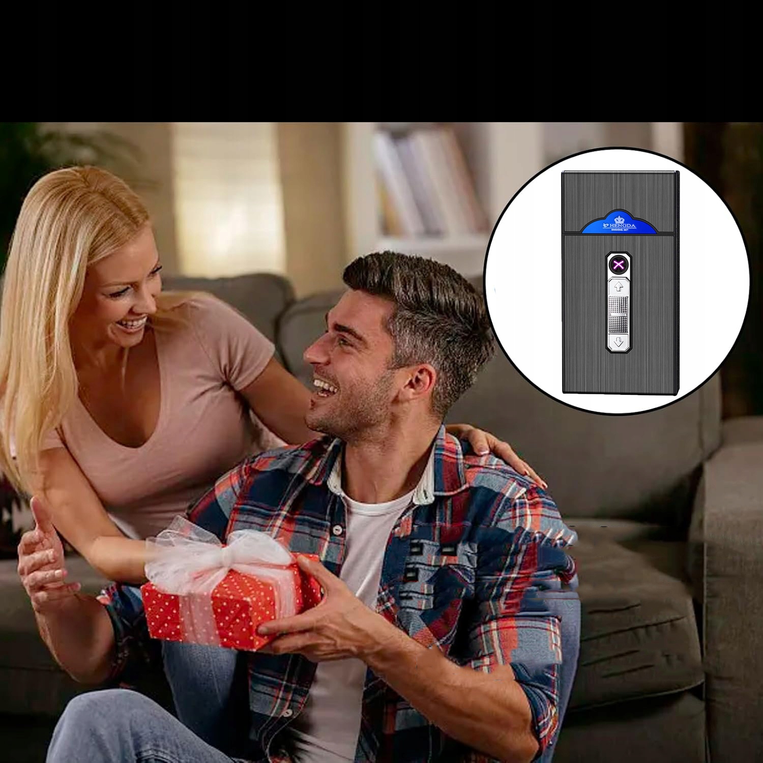 🚬🚬 【Большая вместимость】 Портсигар вмещает полную пачку из 20 обычных сигарет. Встроенная зажигалка двойной изогнутой формы, чтобы зажечь сигарету или сигару, просто сдвиньте кнопку.