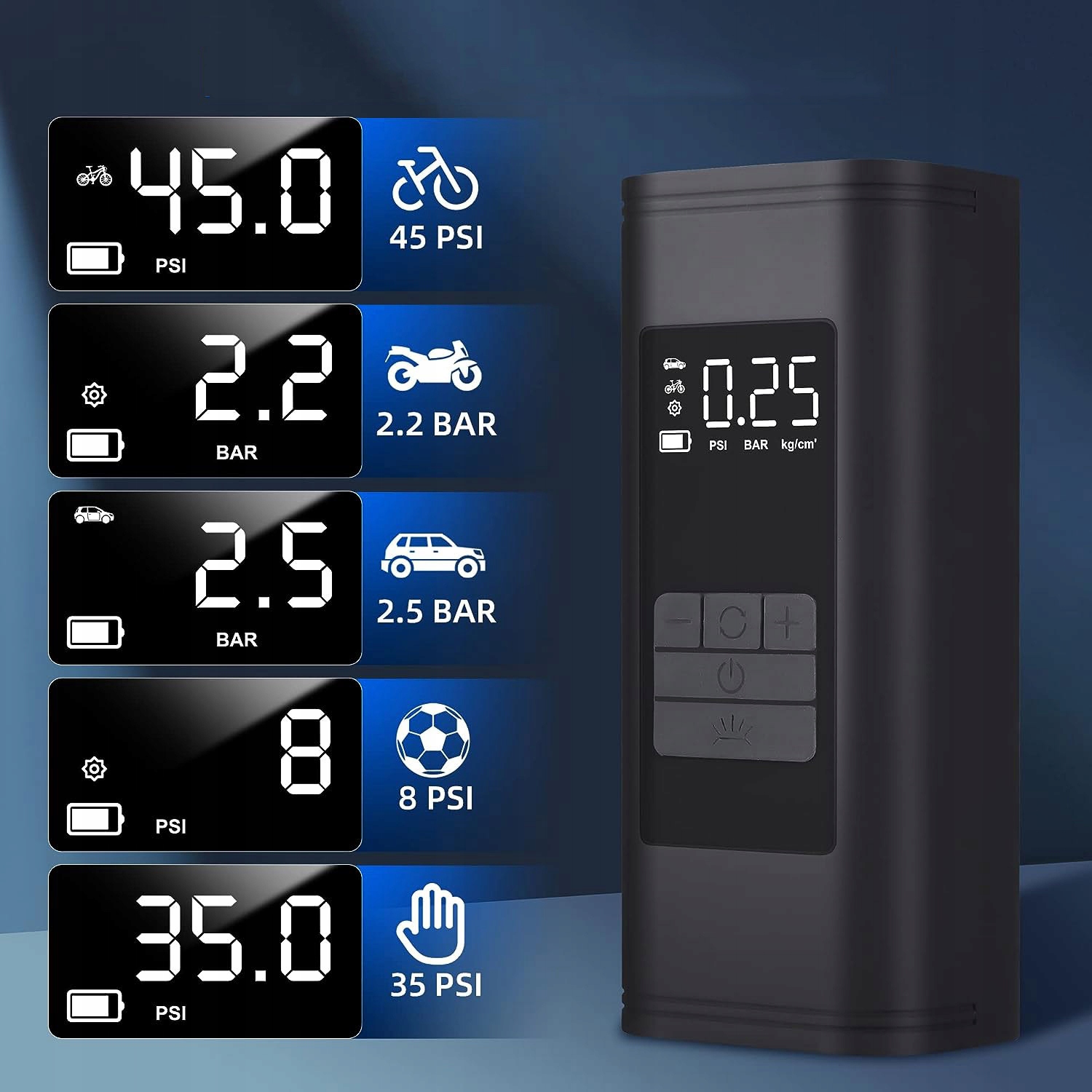 🔒Портативный воздушный насос настроен на 4 режима накачивания для велосипеда, мотоцикла, автомобиля и мяча, что ограничивает стандартный диапазон давления воздуха и эффективно предотвращает ситуации чрезмерного накачивания для обеспечения безопасности.
