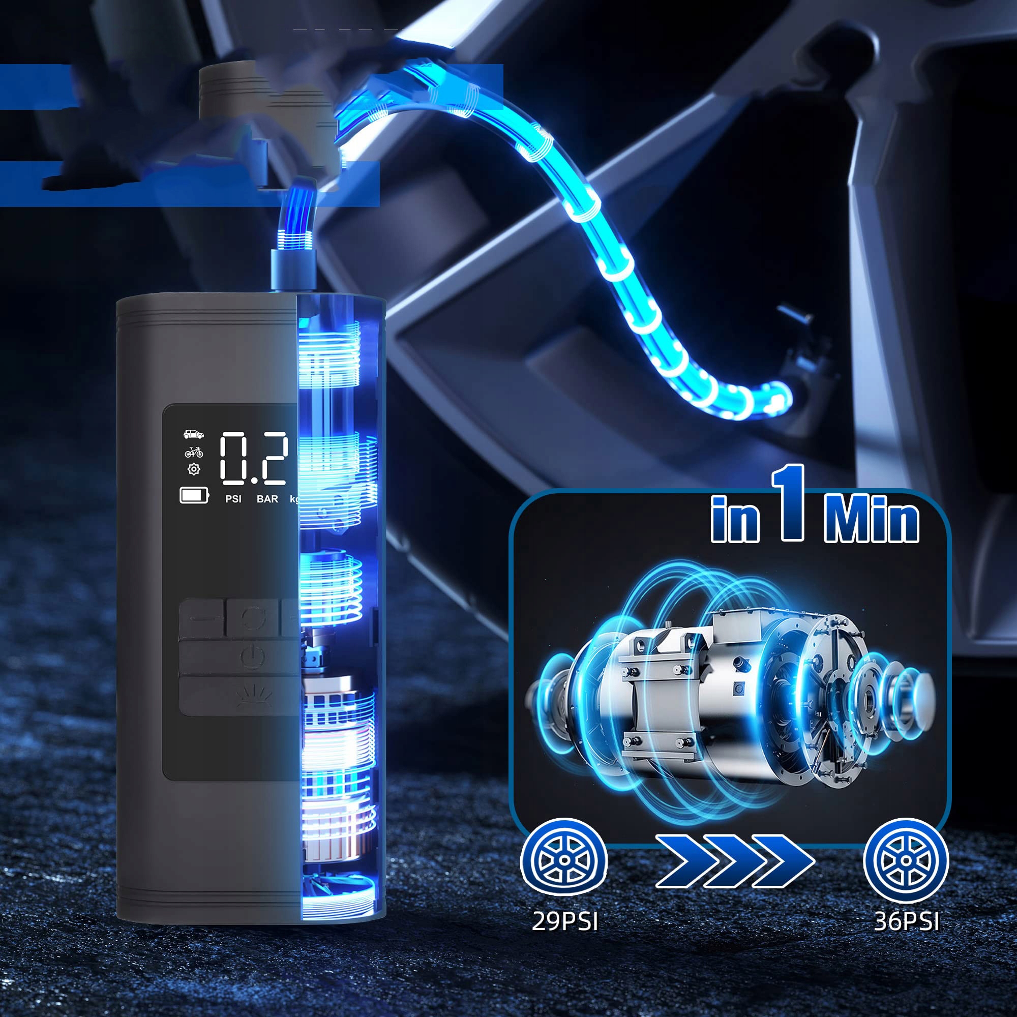 ПОРТАТИВНИЙ ПОВІТРЯНИЙ КОМПРЕСОР 6000MAH ДЛЯ АВТОМОБІЛЬНИХ М'ЯЧІВ
