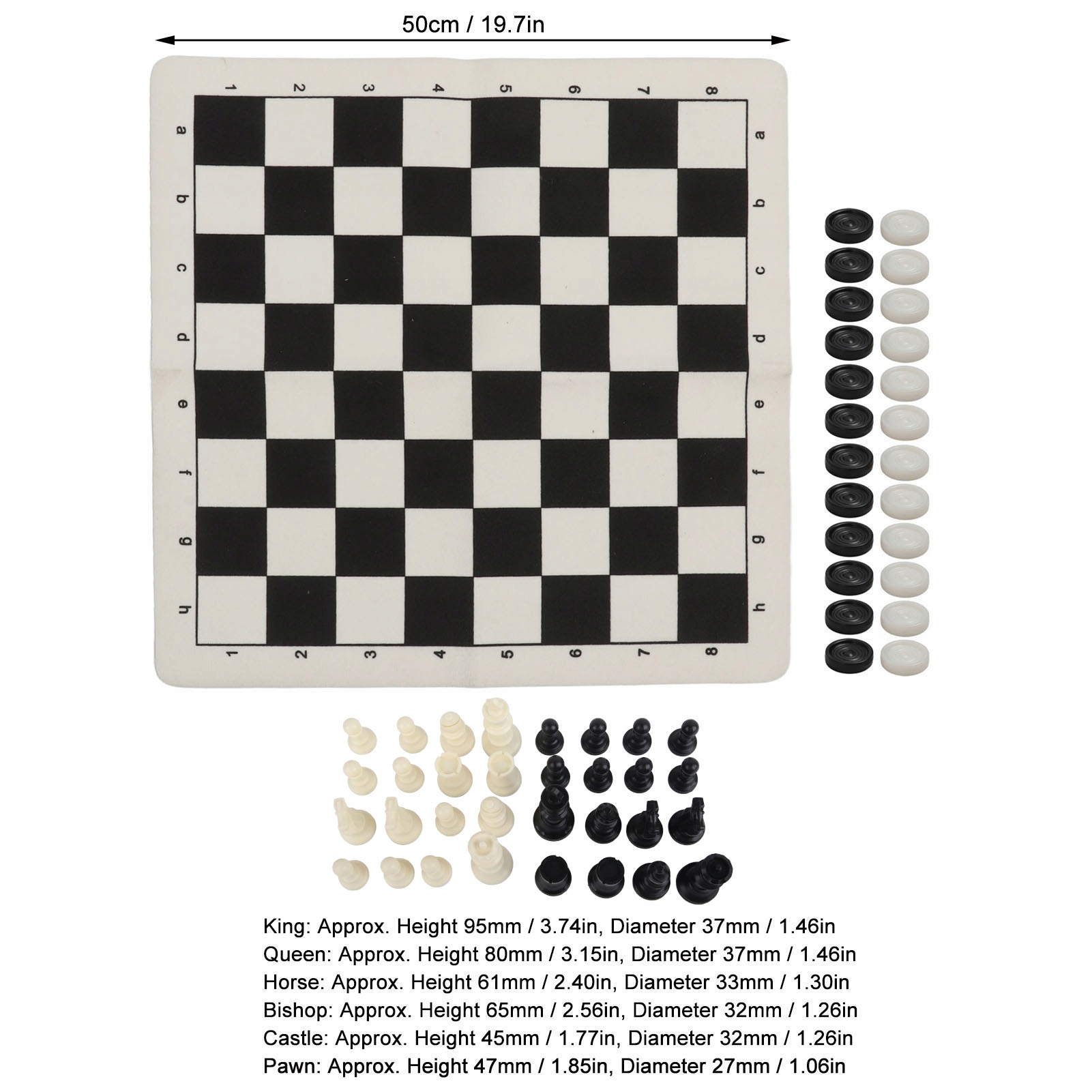 1. Что вы получаете: этот шахматный набор включает в себя 32 шахматные фигуры, 24 шашки, одну шахматную доску из ПУ и одну сумку для хранения, красивый и практичный, может стать отличной игрушкой для отдыха. 2. Материал полипропилен: эти шахматные и шашечные фигуры изготовлены из полипропиленового материала премиум-класса, который является износостойким и устойчивым к царапинам, может использоваться в течение длительного времени. 3. Противоскользящая конструкция нижней части: нижняя часть этих шахматных фигур имеет нескользящую конструкцию, предотвращающую соприкосновение шахматной доски и создание шума. 4. Практичный средний размер: этот шахматный набор среднего размера, а также поставляется с зелено-белой шахматной доской из искусственной кожи для комфорта и практичности. 5. Многократное использование: поставляется с сумкой для хранения на молнии, которую легко хранить и носить с собой, идеально подходит для семейных встреч, путешествий, кемпинга и всех видов развлечений.