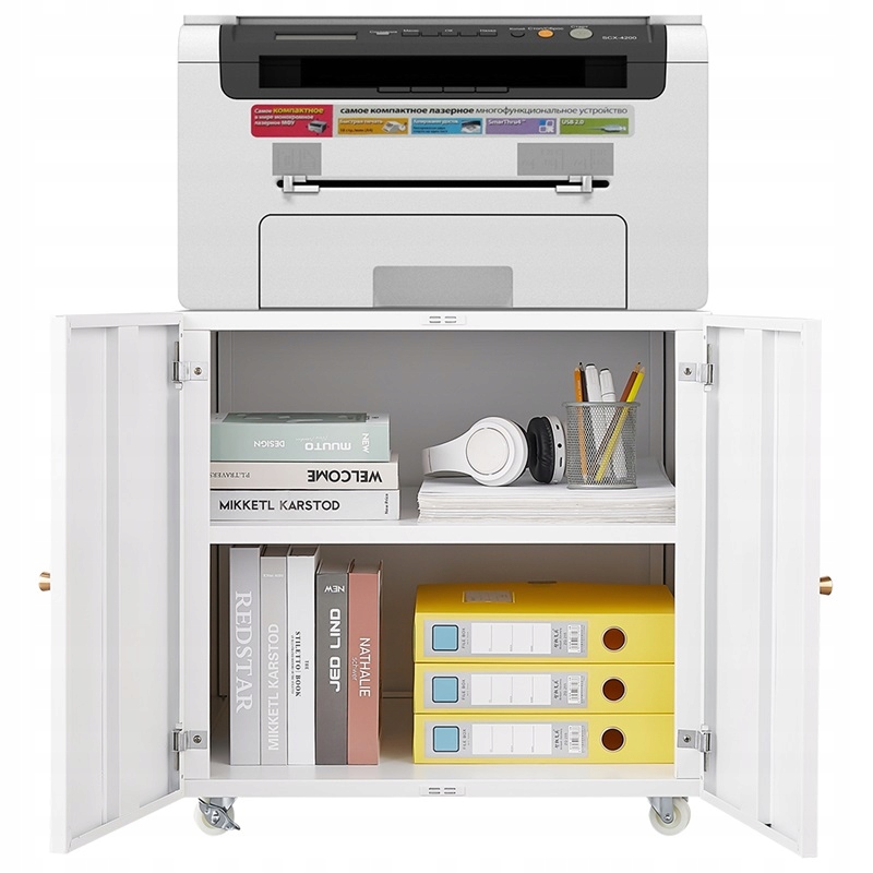 Сверху можно разместить тяжелый принтер/копир, а внутренняя часть стандартно поставляется с регулируемым по высоте разделителем.
