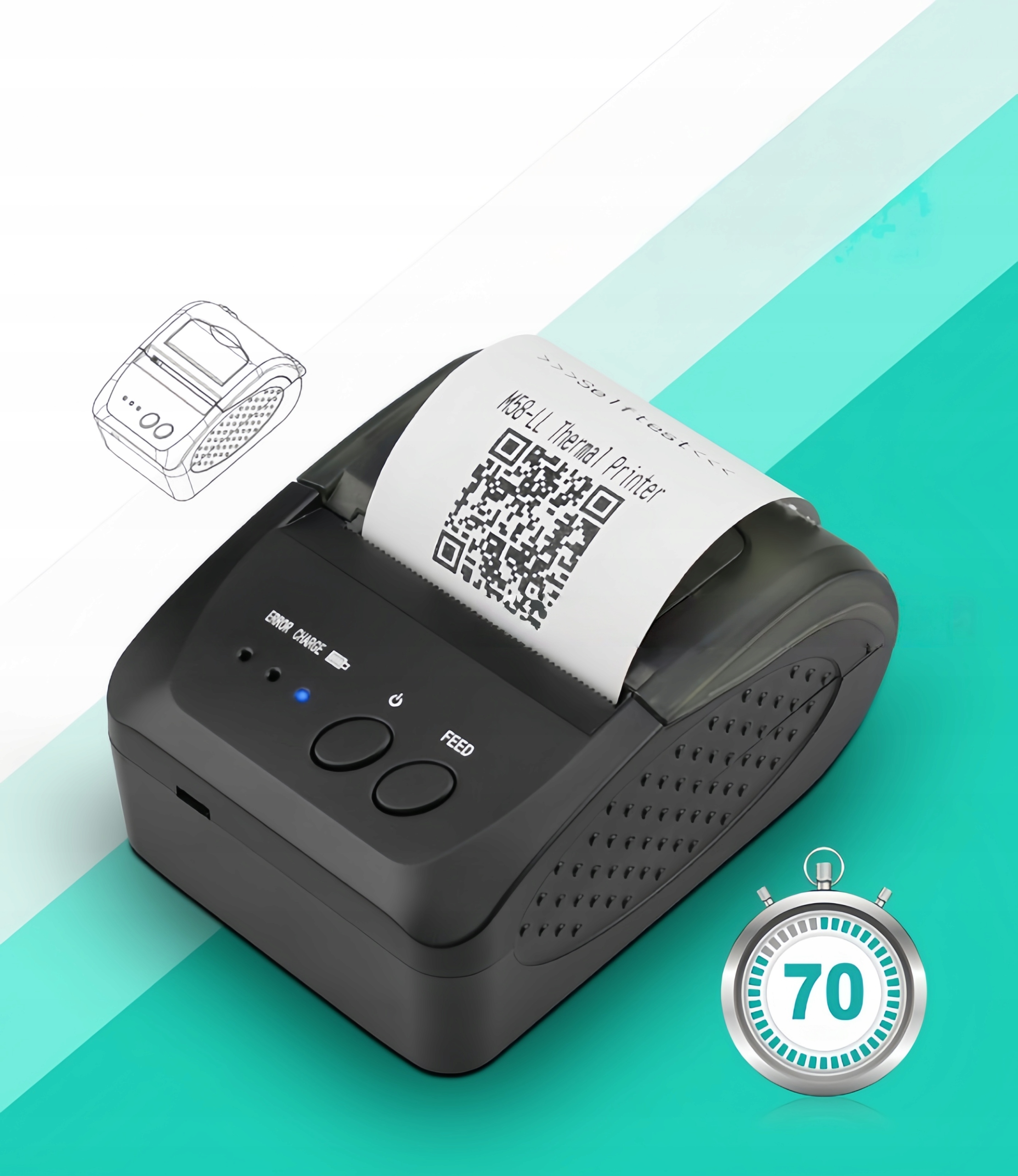 ✅Характеристики печати: Ширина бумаги 58 мм (совместима с рулонами 57,5±0,5 мм), максимальный диаметр рулона 50 мм, поддерживает толщину бумаги 0,06–0,08 мм
