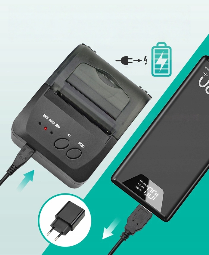 ✅ Аксессуары: USB-кабель для передачи данных + USB-зарядное устройство + рулон термобумаги + подробное руководство пользователя