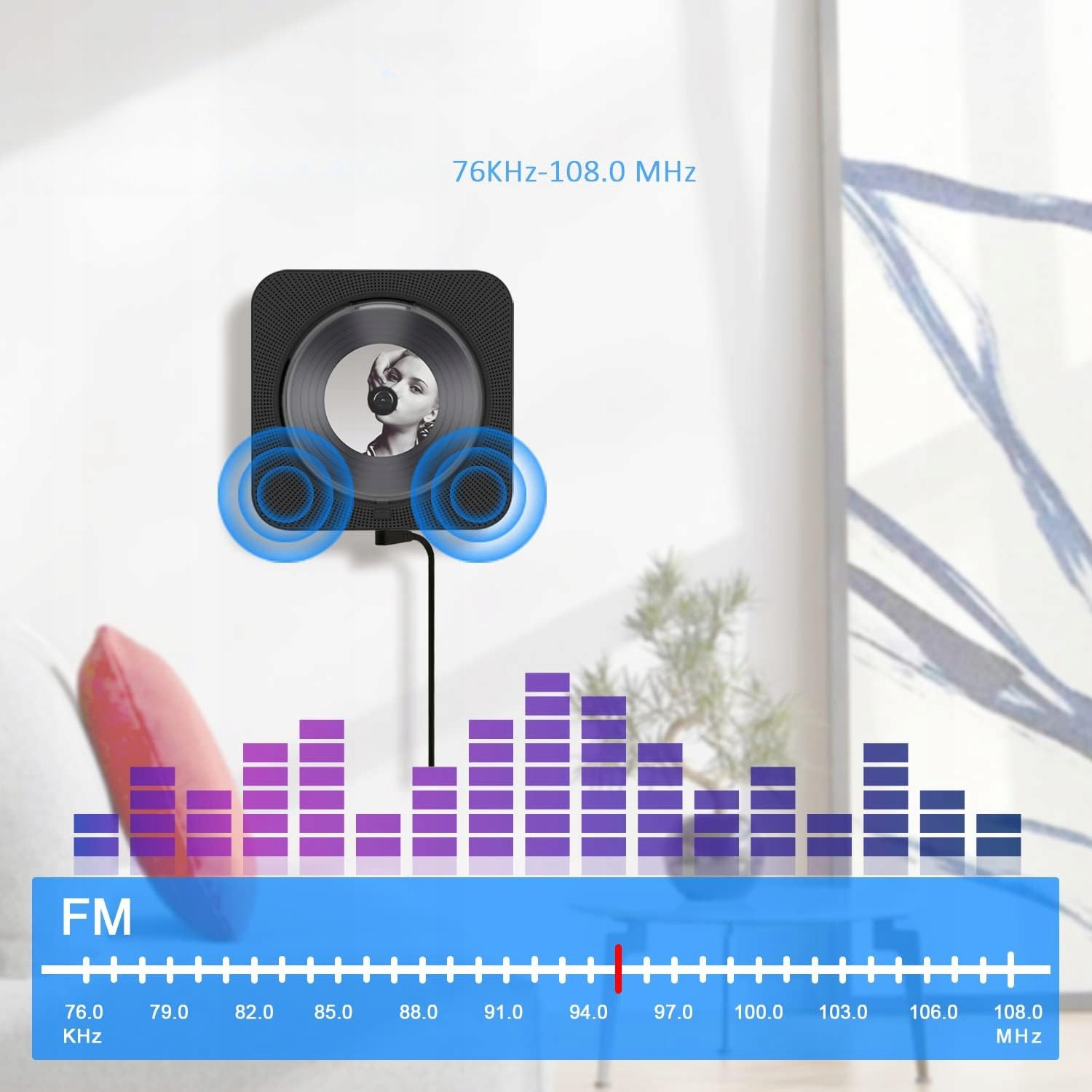 CD-плеер Bluetooth поставляется с комплектом для настенного крепления и пластиной, которую можно легко установить на стену, чтобы сэкономить место, делая ваш дом более элегантным и художественным, а также Также оснащен настольной подставкой, на которой можно легко разместить стол или письменный стол. Креативный дизайн пылезащитного чехла означает, что вам не придется беспокоиться о проблемах с воспроизведением компакт-диска, вызванных скоплением пыли. Примечание. После подключения питания нажмите любую кнопку на устройстве, чтобы включить плеер, затем нажмите и удерживайте кнопку MODE в течение 3 секунд, чтобы выключить плеер.
