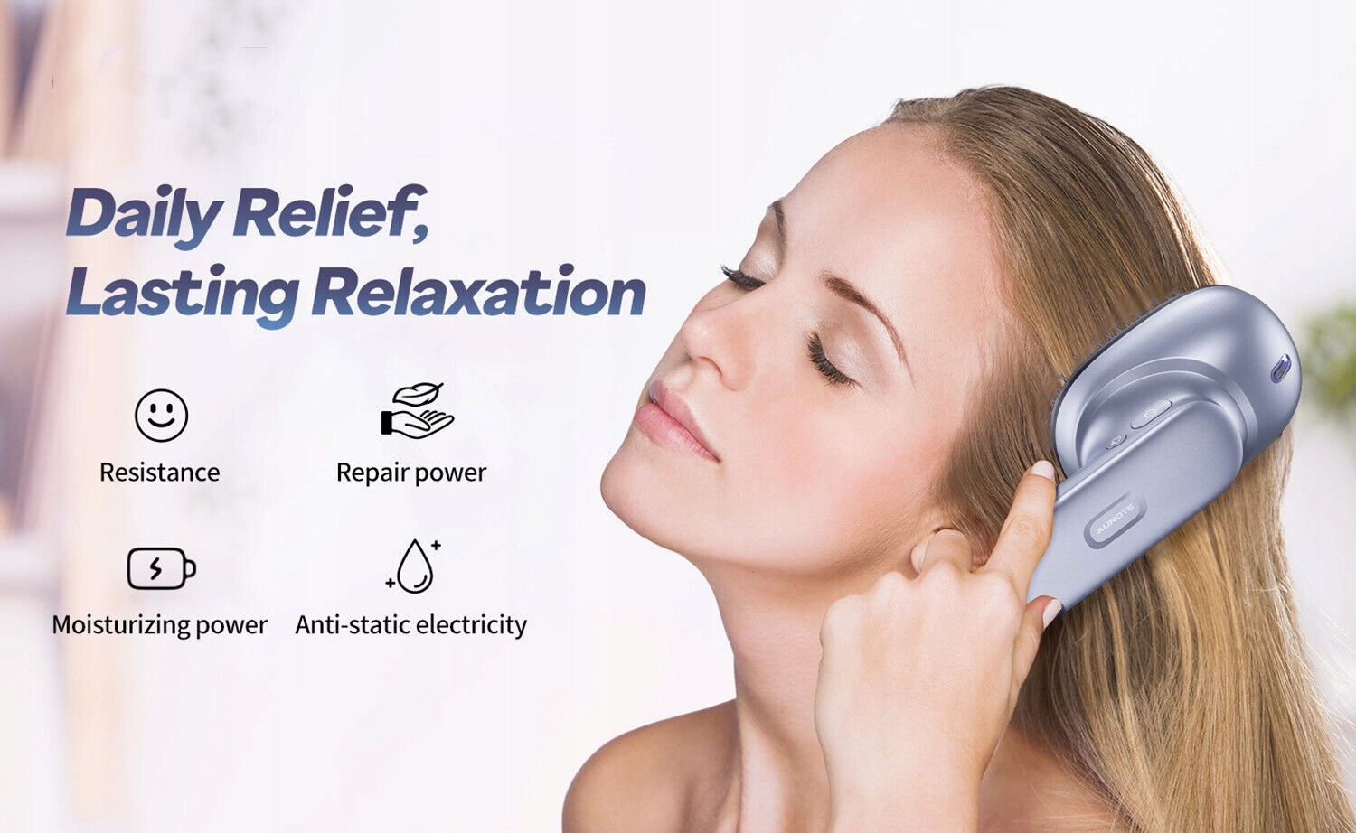 Массажер для головы: Погрузитесь в спа-процедуры с нашей массажной расческой. Устройство имеет два уровня интенсивности вибрации и обеспечивает 2400 нежных вибраций в минуту, предлагая ощущения, напоминающие массаж, выполняемый профессиональным терапевтом. Этот интенсивный, но успокаивающий массаж эффективно снимает напряжение и стресс кожи головы, обеспечивая непревзойденное расслабление и комфорт при каждом использовании. Наша массажная щетка оснащена функцией защиты от перегрева, которая продлевает срок ее службы. Во время стандартных сеансов массажа аппарат автоматически отключается через пять минут работы в целях безопасности. Чтобы продолжить использование, нажмите переключатель.