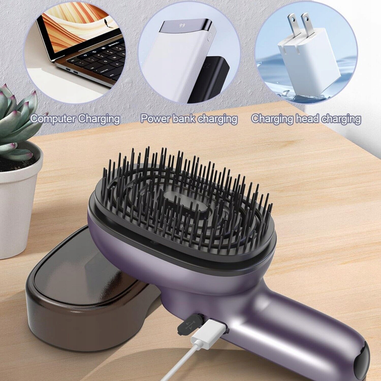 Длительная батарея: Благодаря встроенной перезаряжаемой батарее емкостью 750 мАч Вам больше никогда не придется беспокоиться о том, что аккумулятор нашей расчески разрядится. Быстрая 2-часовая зарядка обеспечивает 103 минуты непрерывного использования, поэтому вы можете наслаждаться массажем кожи головы и процедурами по уходу за волосами в любое время и в любом месте. Длительное время автономной работы идеально подходит для ежедневного ухода за волосами и ухода за ними в дороге.