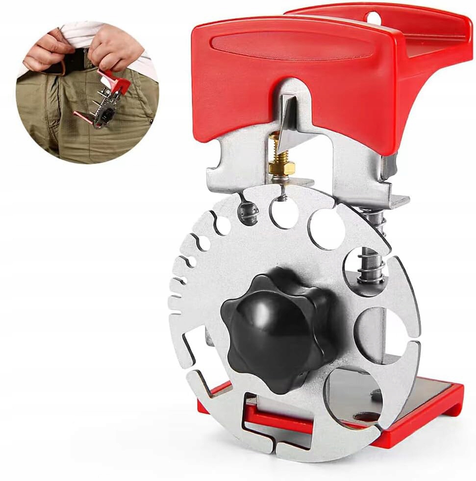 ⚙️【Быстрая зачистка】На пластине из нержавеющей стали имеется 14 отверстий разного размера. Вращая поворотный стол, выберите подходящие отверстия диаметром 0,9-16 мм, затем зафиксируйте их черными поворотными кнопками. Подходит для медной, алюминиевой, одножильной, жесткой кожаной проволоки и т. д.