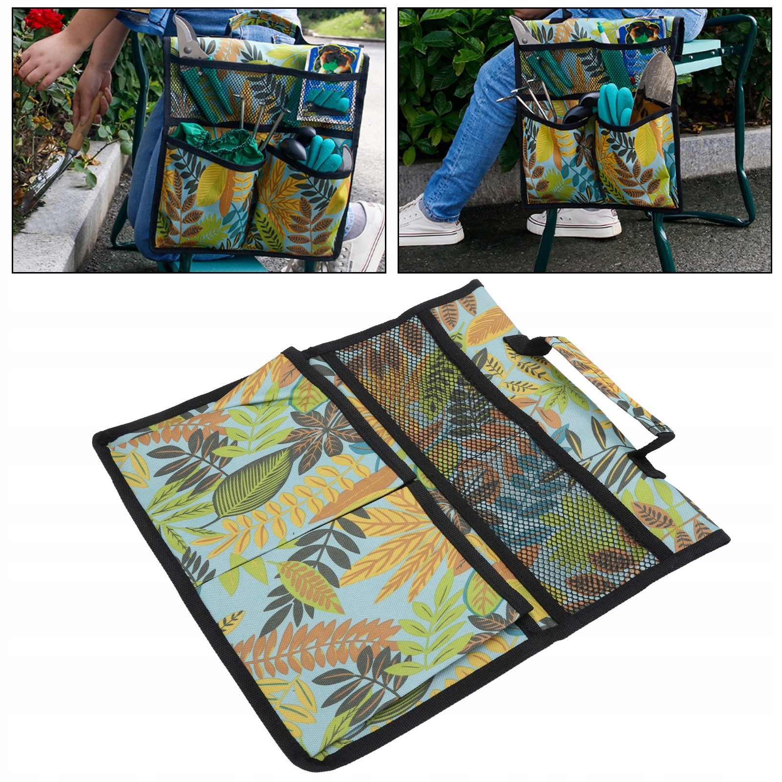 Портативный оксфордский садовый табурет с сумкой для инструментов на коленях, тележка для работы на открытом воздухе, подвесные сумки, органайзеры с зелеными листьями