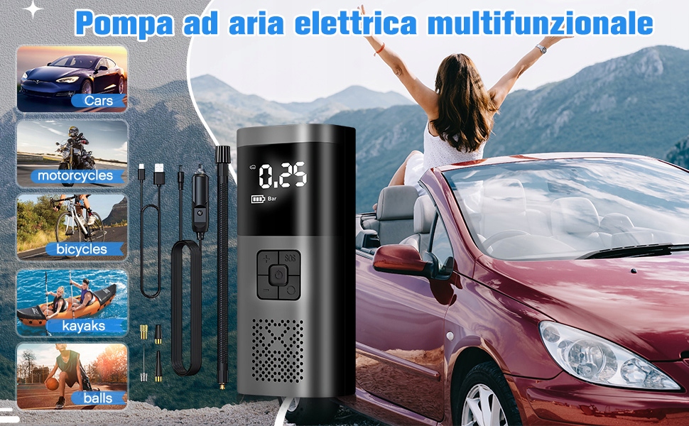 Многофункциональный электрический воздушный насос, широко используемый в автомобилях, мотоциклах, велосипедах, каяках, мячах