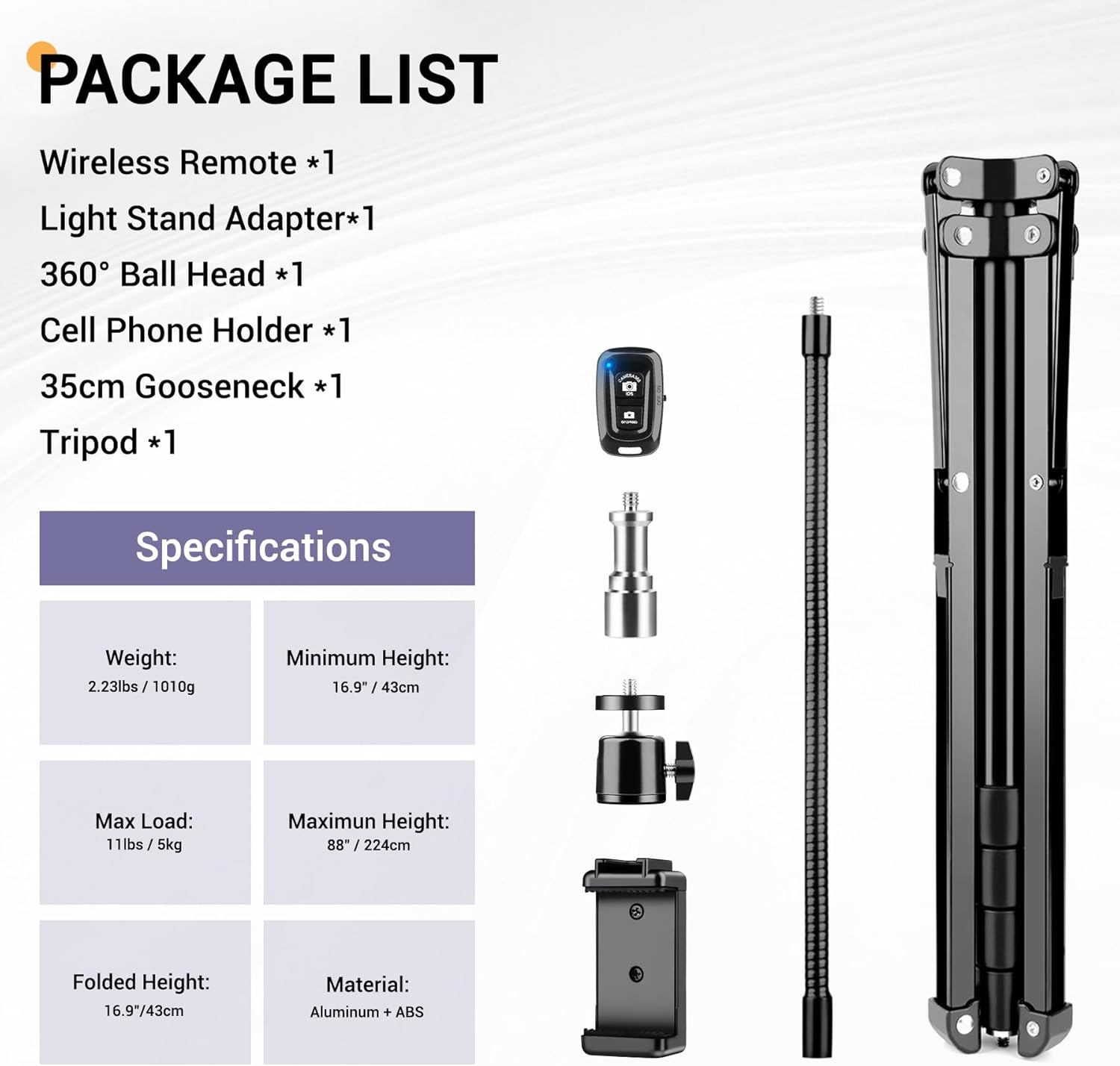 ПОРТАТИВНЫЙ РАСШИРЯЕМЫЙ ШТАТИВ ВЫСОКОЙ 224 СМ С ДИСТАНЦИОННЫМ УПРАВЛЕНИЕМ ДЛЯ СМАРТФОНА И КАМЕРЫ