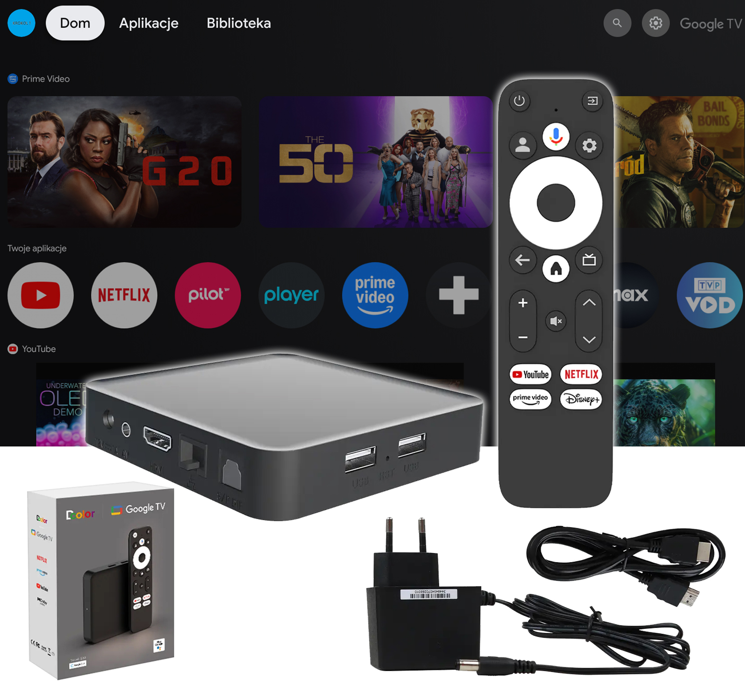 Dcolor GD2 полностью сертифицирован Google, что обеспечивает доступ к популярным приложениям, таким как Showmax или Netflix, с полной поддержкой 4K (Ultra HD) и HDR (если устройство отображения это позволяет). Благодаря этому вы сможете наслаждаться новейшими фильмами и сериалами в высочайшем качестве. Сертификация также означает оптимизацию стабильности и безопасности использования потоковых приложений.