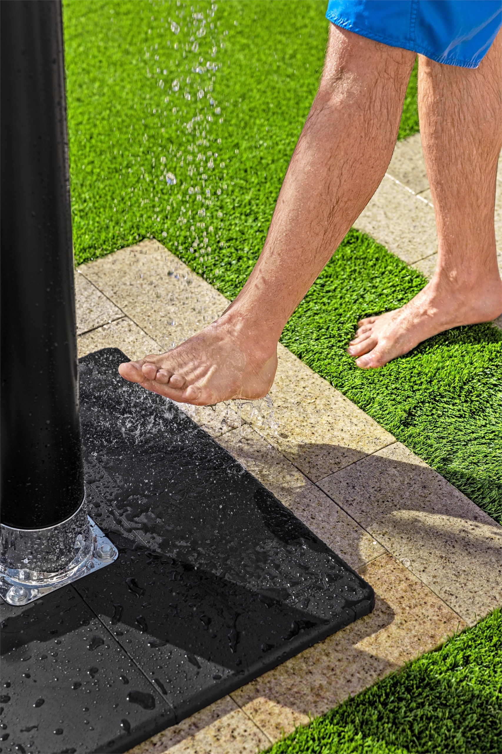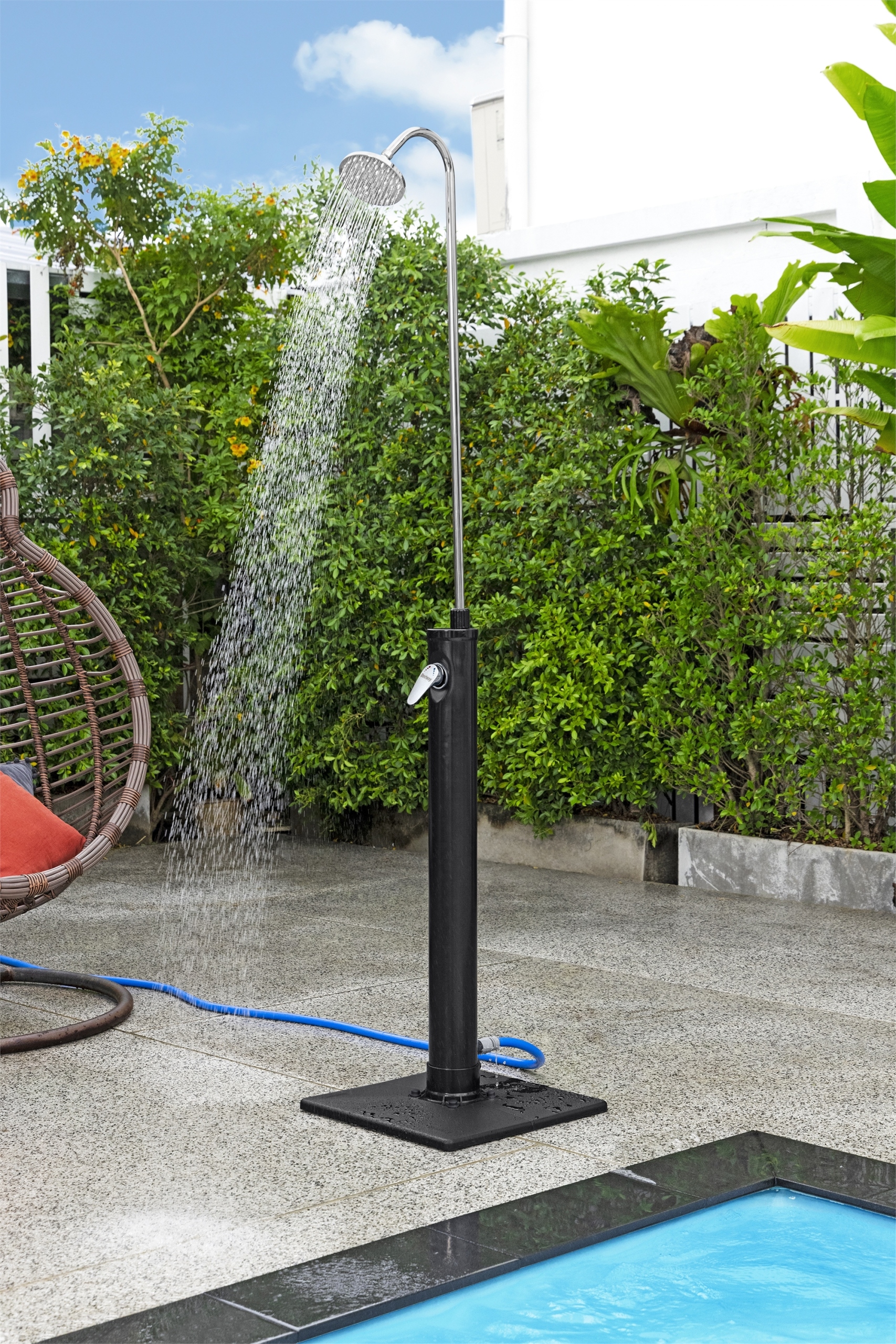 Садовый душ — идеальное решение для всех, кто хочет принять душ перед тем, как прыгнуть в бассейн, но не только это. Он также идеально подходит для охлаждения в жаркие дни или отдыха после физических упражнений. Благодаря регулировочной ручке вы сможете подобрать для себя подходящую температуру воды. Сборка очень проста, все необходимые элементы входят в комплект. Прикрепленное основание обеспечивает устойчивость. Душ изготовлен из прочного материала, что гарантирует долгий срок службы изделия и устойчивость к погодным условиям.