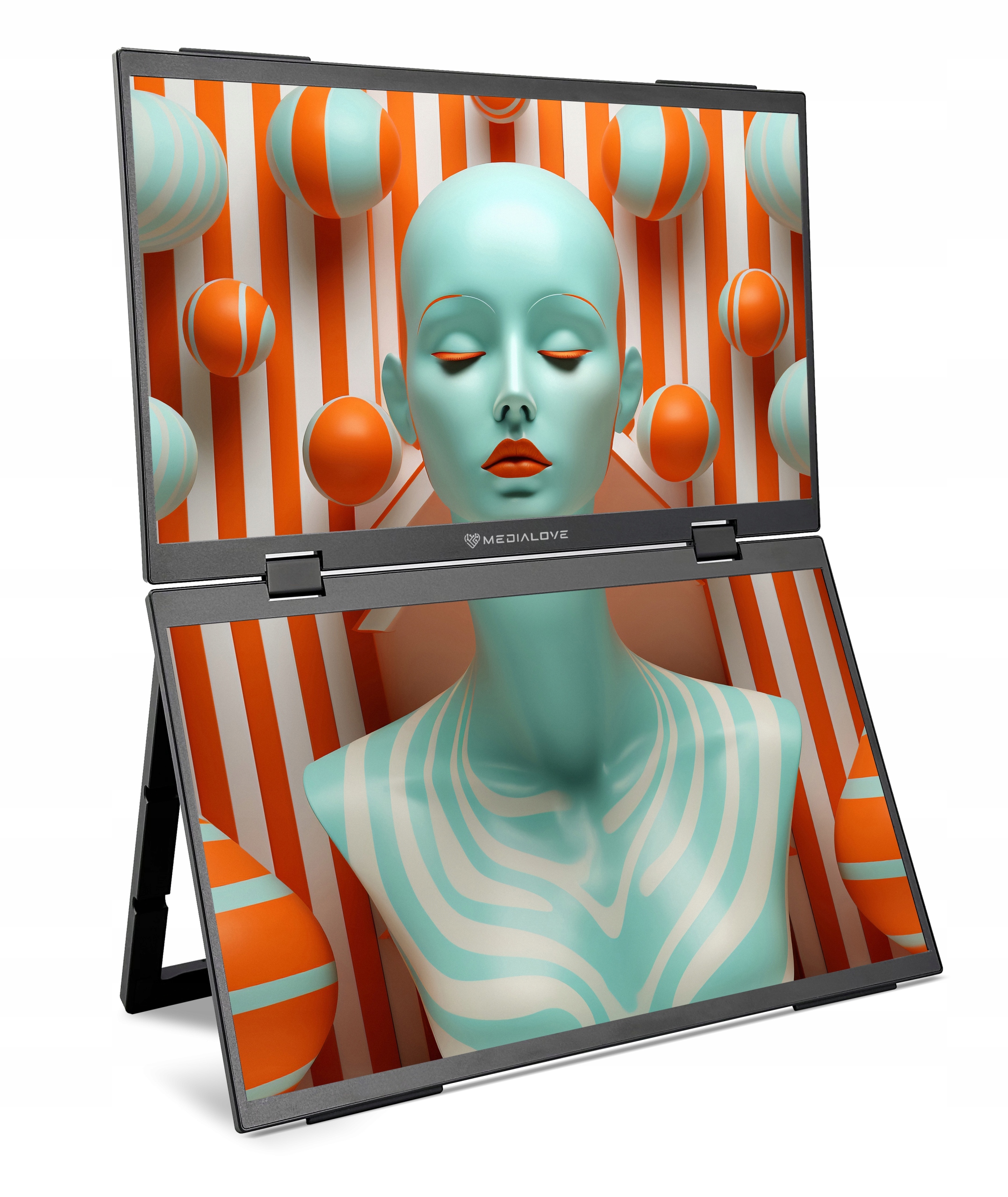 Современный, портативный монитор с двумя экранами бренд Medialove разрешает расширение области отображения , освобождает вас от ограничений маленького экрана . Меньше места, чем традиционные мониторы с двойным дисплеем на бокам