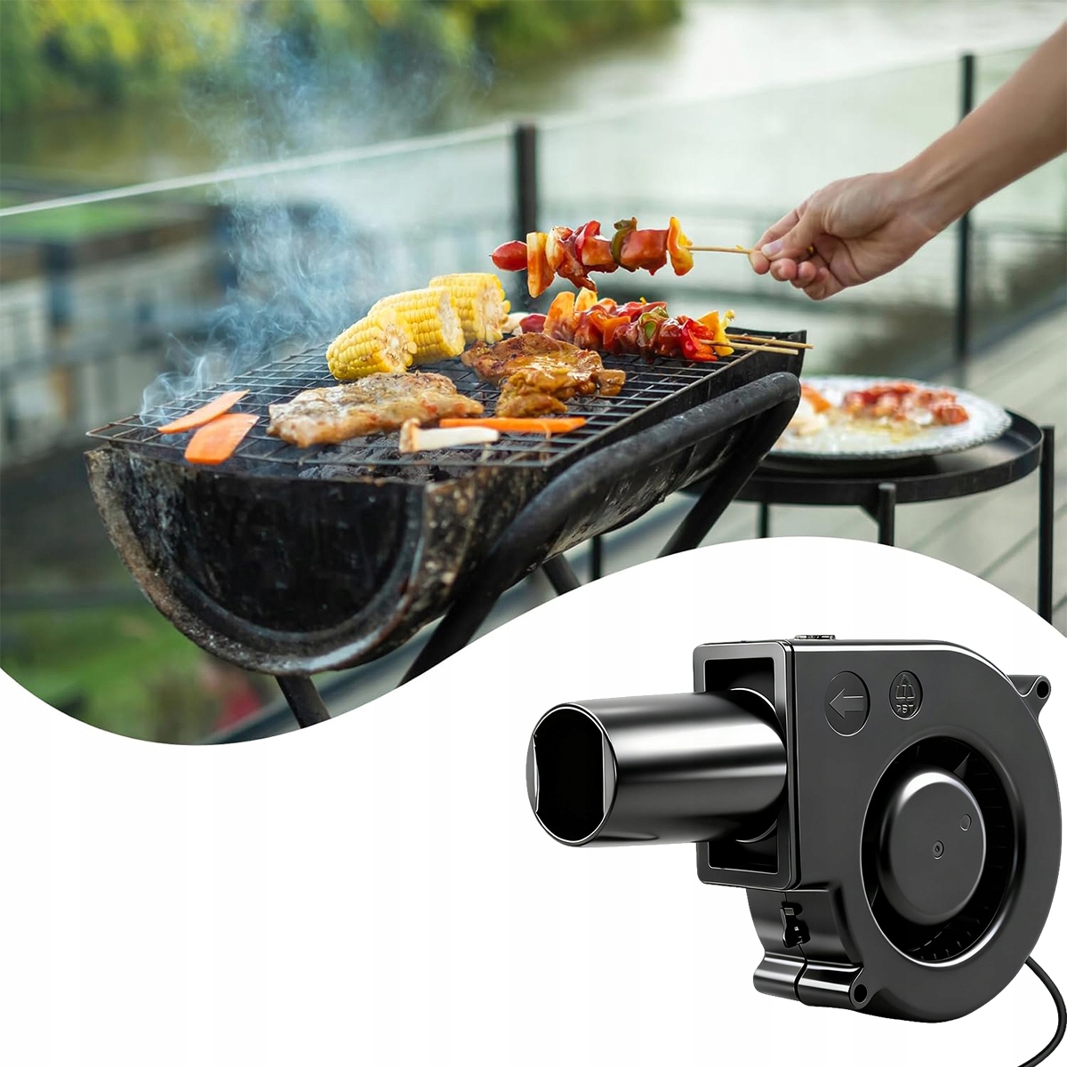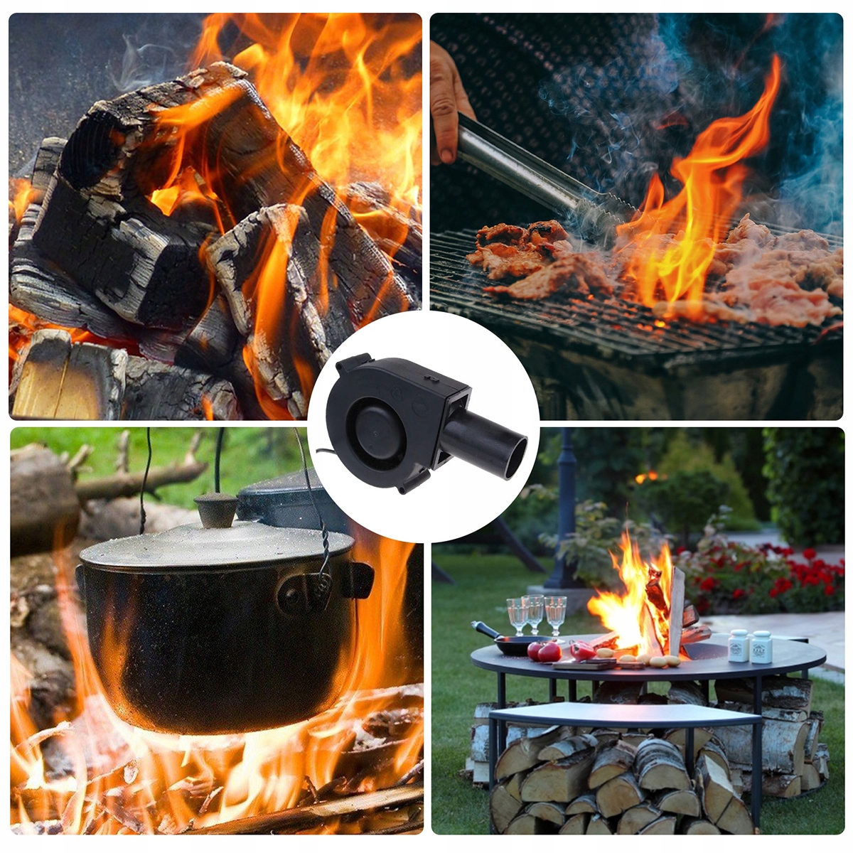 Этот вентилятор подходит не только для грилей. Также подходит для каминов, дровяных печей, угольных каминов, разжигателей огня и угольных грилей, а также для удаления дыма.
