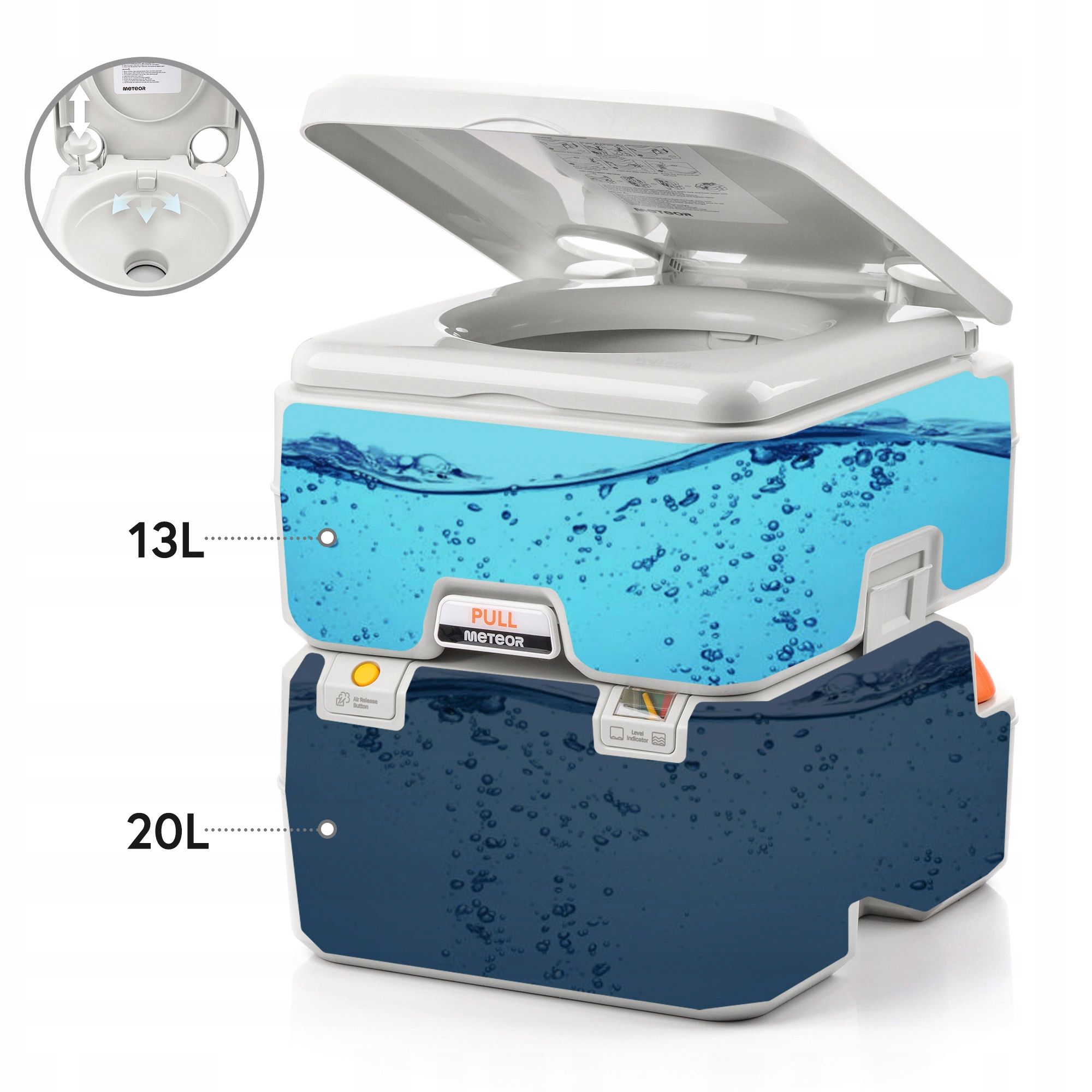 Туалет туристический Meteor – незаменимый прибор в походе, походе или путешествии. Он легкий, его легко транспортировать и хранить. Устойчивый к повреждениям материал делает унитаз долговечным. Гигиеничный и герметичный продукт. Обеспечивает удобство пользования, чистки и опорожнения.