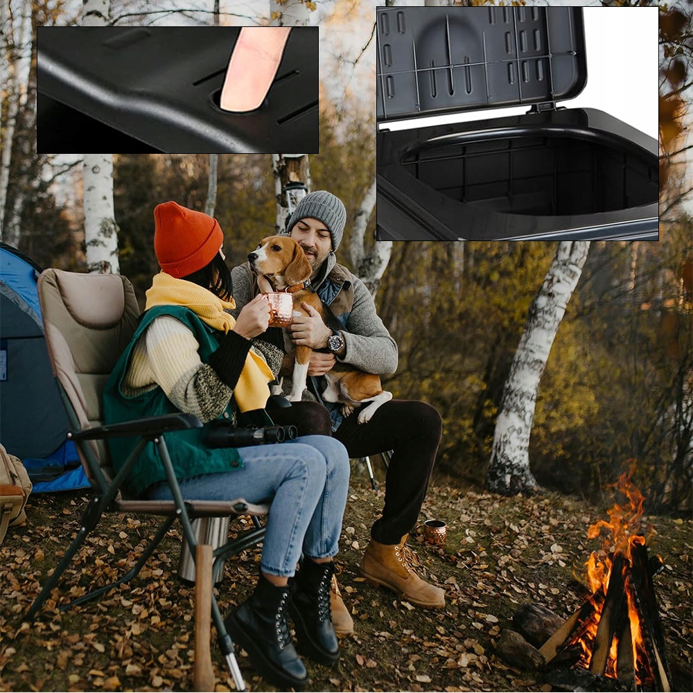 Функциональная конструкция обложки позволяет свободно переключать различные режимы использования, а также может использоваться в качестве туалета для кемпинга, контейнера для хранения, мусорного ведра и табурета. Идеально подходит для путешествий, кемпинга, рыбалки, пикников, пеших прогулок, альпинизма, уличных пробок, строительных площадок и т. Д.