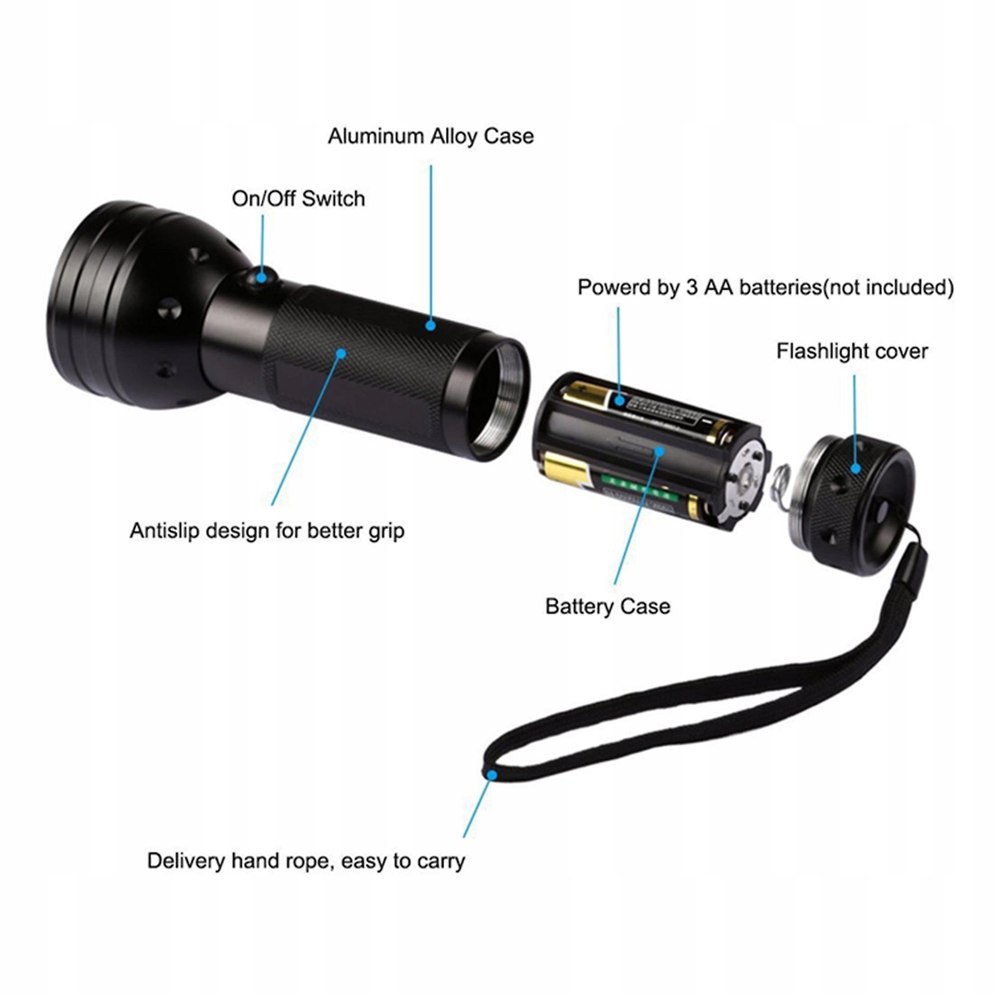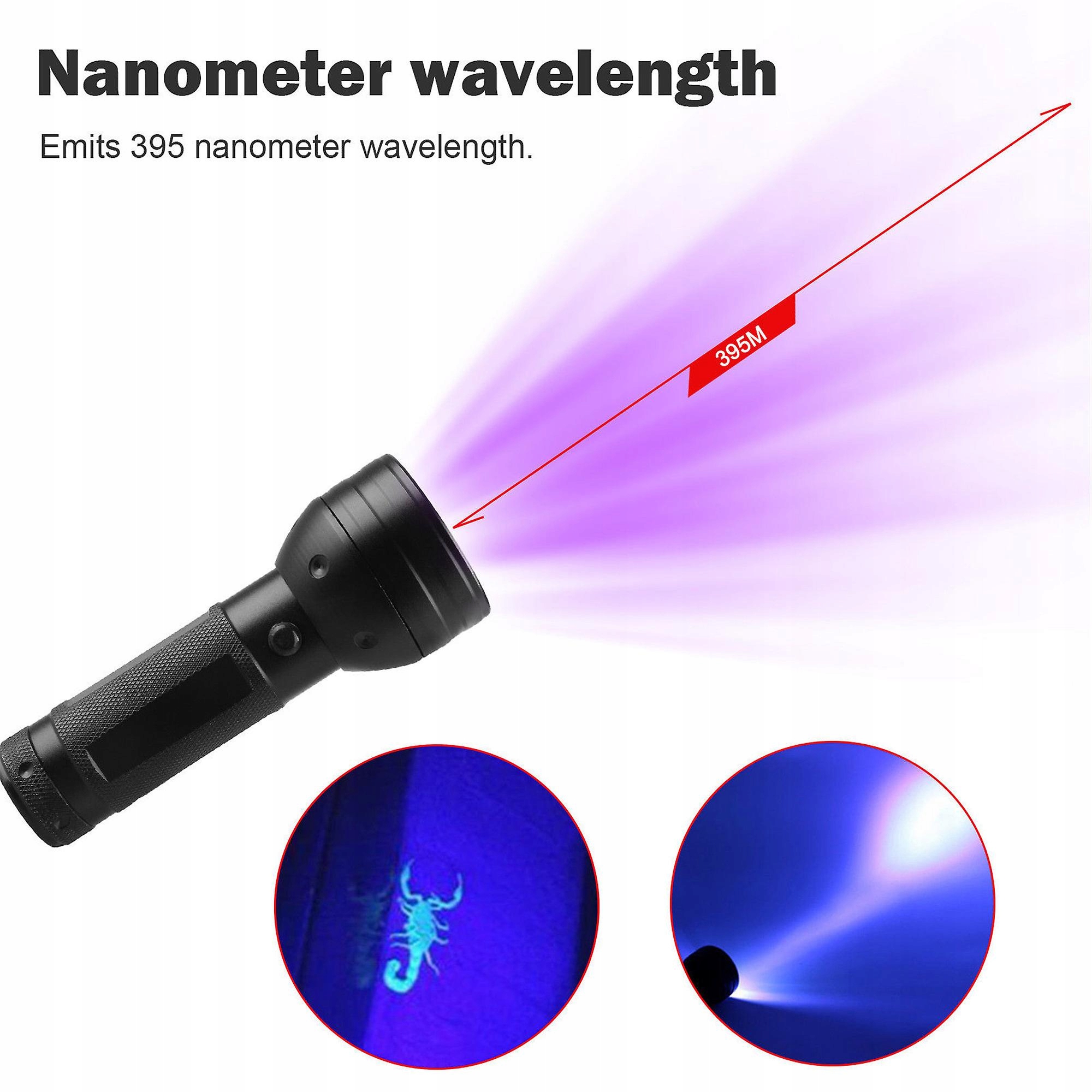 Особенности: УФ-фонарик Blacklight — удобный инструмент для широкого спектра применений. Он компактен по размеру и легок для удобной переноски. - Этот фонарик для обнаружения мочи домашних животных поможет найти мочу собак и кошек на коврах, ковриках и на любом полу или стене. Рифленая конструкция обеспечивает надежный захват. - Этот элемент обеспечивает большой диапазон видимости. Этот светодиодный черный светильник подходит для инспекций, обнаружения скорпионов, проверки безопасности, заражения грызунами, проверки гостиничных номеров и многого другого. Технические характеристики: