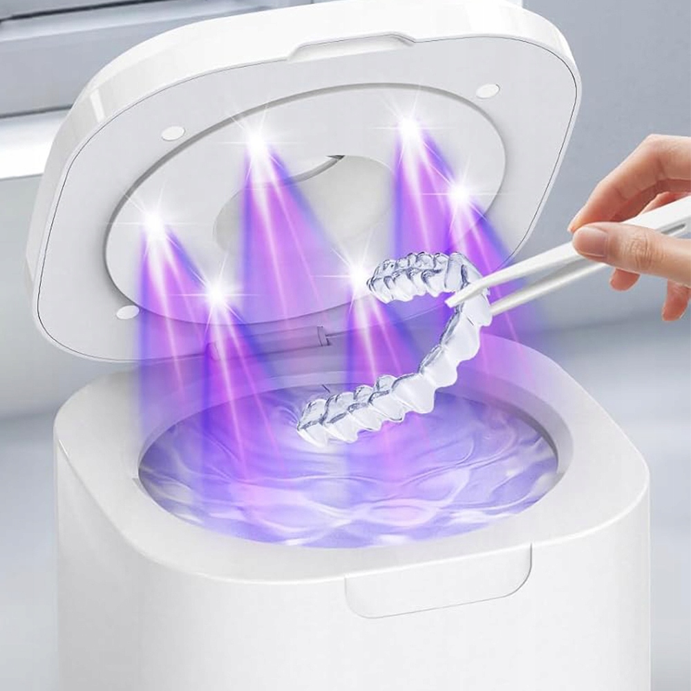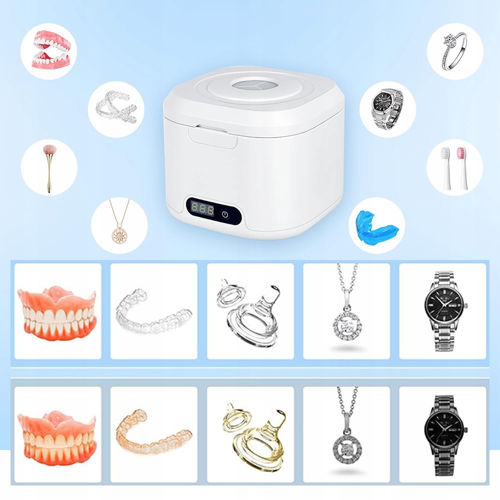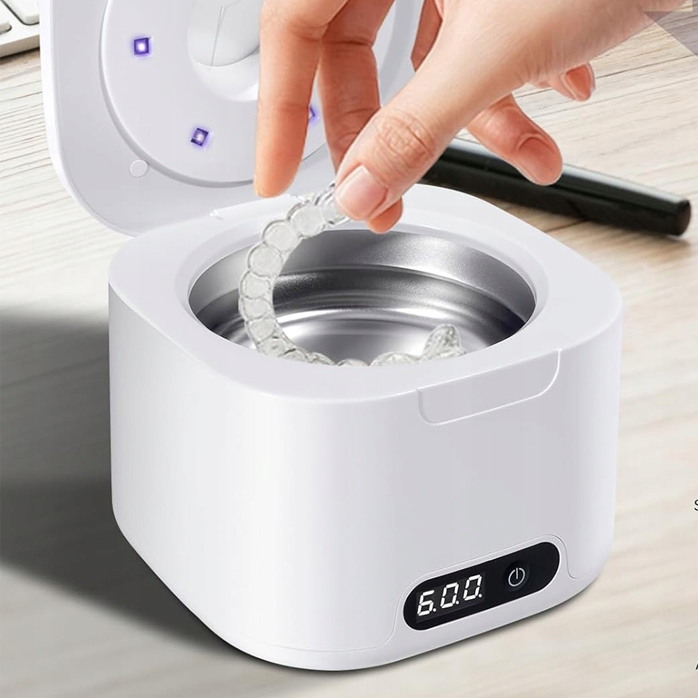 - Этот ультразвуковой очиститель использует высокочастотные звуковые волны для удаления частиц и грязи с зубных протезов, брекетов, насадок зубных щеток и даже ювелирных изделий.