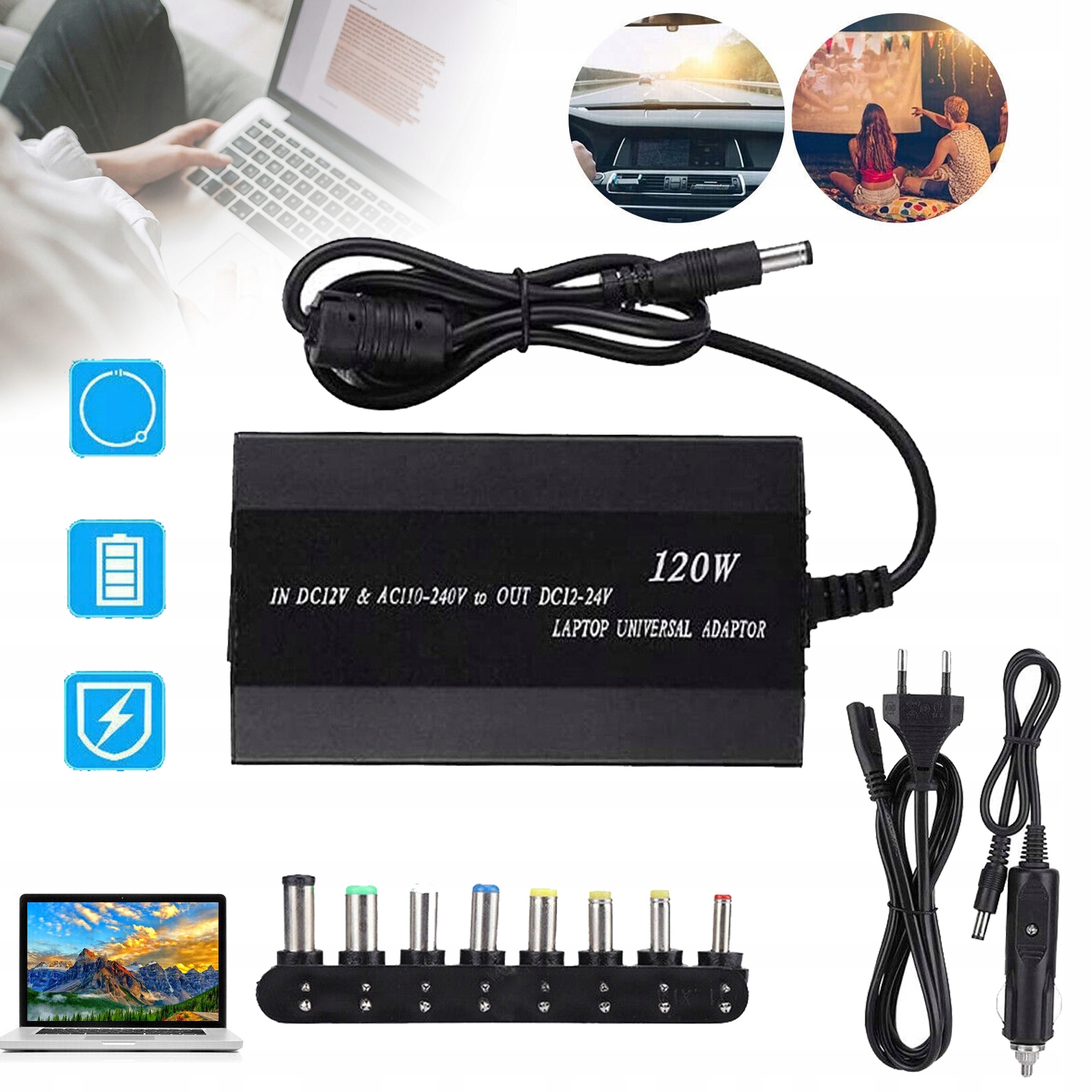 ПОРТАТИВНИЙ ЗАРЯДНИЙ ПРИСТРІЙ ДЛЯ НОУТБУКА 120 ВТ УНІВЕРСАЛЬНИЙ БЛОК ЖИВЛЕННЯ ЗАРЯДНИЙ КАБЕЛЬ