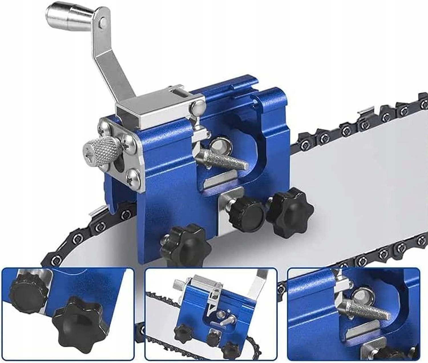 ✔️ РУЧНАЯ ЗАТОЧКА ЦЕПЕЙ, ПОРТАТИВНЫЙ ДОМАШНИЙ ИНСТРУМЕНТ ДЛЯ ЗАТОЧКИ ЦЕПЕЙ, ТОЧИЛКА ЦЕПЕЙ ДЛЯ ЗАТОЧКИ ЦЕПЕЙ ЗАЖИМЫ, С 5 ШЛИФОВАЛЬНЫМИ ГОЛОВКАМИ, СИНИЙ🌟