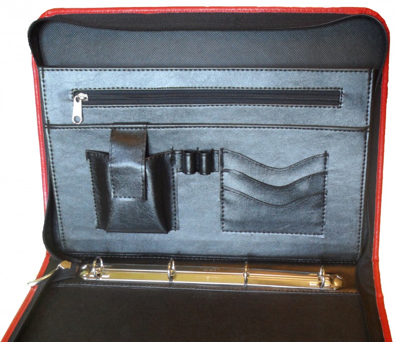 Дополнительно портфель оснащен 4-кольцевым кольцом и зажимом для листов бумаги формата А4.