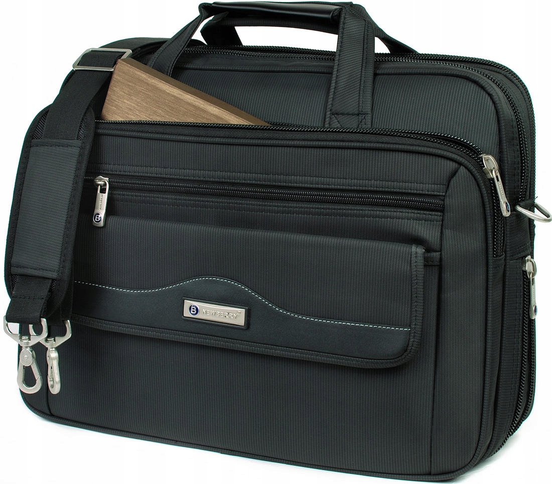 Сумка классического дизайна подойдет как для элегантной, так и для повседневной одежды. Идеально подходит для переноски документов, бытовой электроники и предметов повседневного обихода. Изготовлен из полиэфирной ткани, усиленной полиуретановым покрытием снизу. Имеет 10 карманов, в том числе 5 на молнии. Внутри два основных отделения, в одном из которых есть карман поменьше для документов, а в другом — карман с держателем для ноутбука. Внутренние размеры самого большого кармана 28 х 41 х 6 – 8 см. Место для ноутбука размером 28 х 37 х 4 см. Спереди под эмблемой расположен широкий отсек, закрывающийся на липучку. Рядом карман с местом для телефона, ручек и т.п. Сзади есть отделение размером 28 х 41 х 3 см для документов и газет. Регулируемый ремешок максимальной длиной до 120 см.