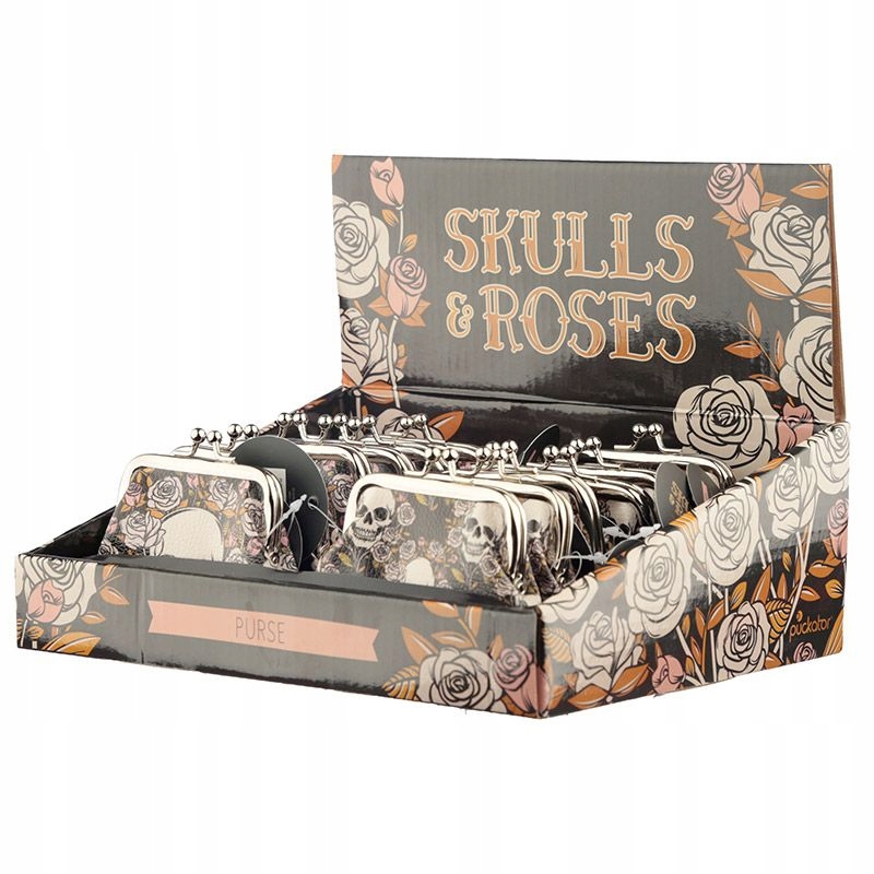 Portmonetka Czaszka Duża Czacha Róże Kosmetyczka