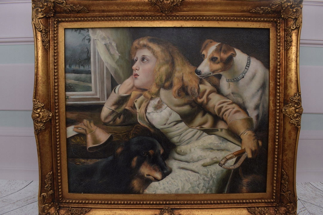 Портрет девушки с собаками - СОБАКА - Картина маслом - Подарок в золотой раме